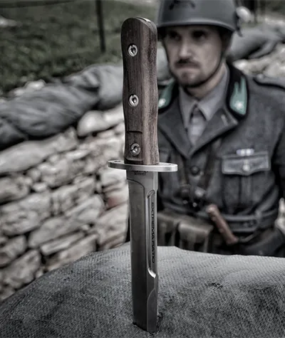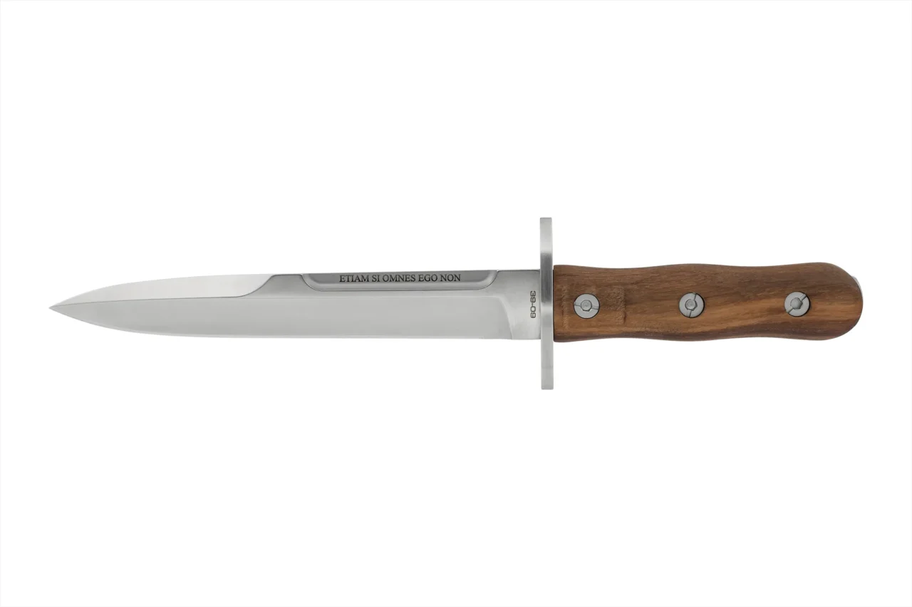 The result of a project sponsored by COFS (the inter-force operations command for Italian special forces) and its former Commander-in-chief, Gen. Bertolini, not to mention advocated for by knife collectors worldwide. This combat knife is a restyling of the Model 1939 “paracadutista assaltatore” (assault paratrooper) knife, a celebrated piece of Italian military history.