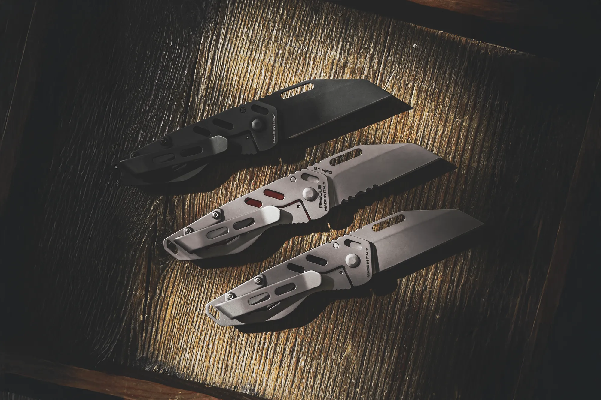 Rescue Red Stone Washed M390 and Black Stone Washed M390 are made of Böhler M390 steel heat treated to 61 HRC which, thanks to metallurgical powder production processes, guarantees cutting effectiveness, resistance to wear and oxidation over time. The sheepsfoot blade is equipped with a small slot on the top to facilitate opening. Its particular structure, thanks to the straight edge, allows the user to comfortably rest his fingers on the back of the knife and use it smoothly.