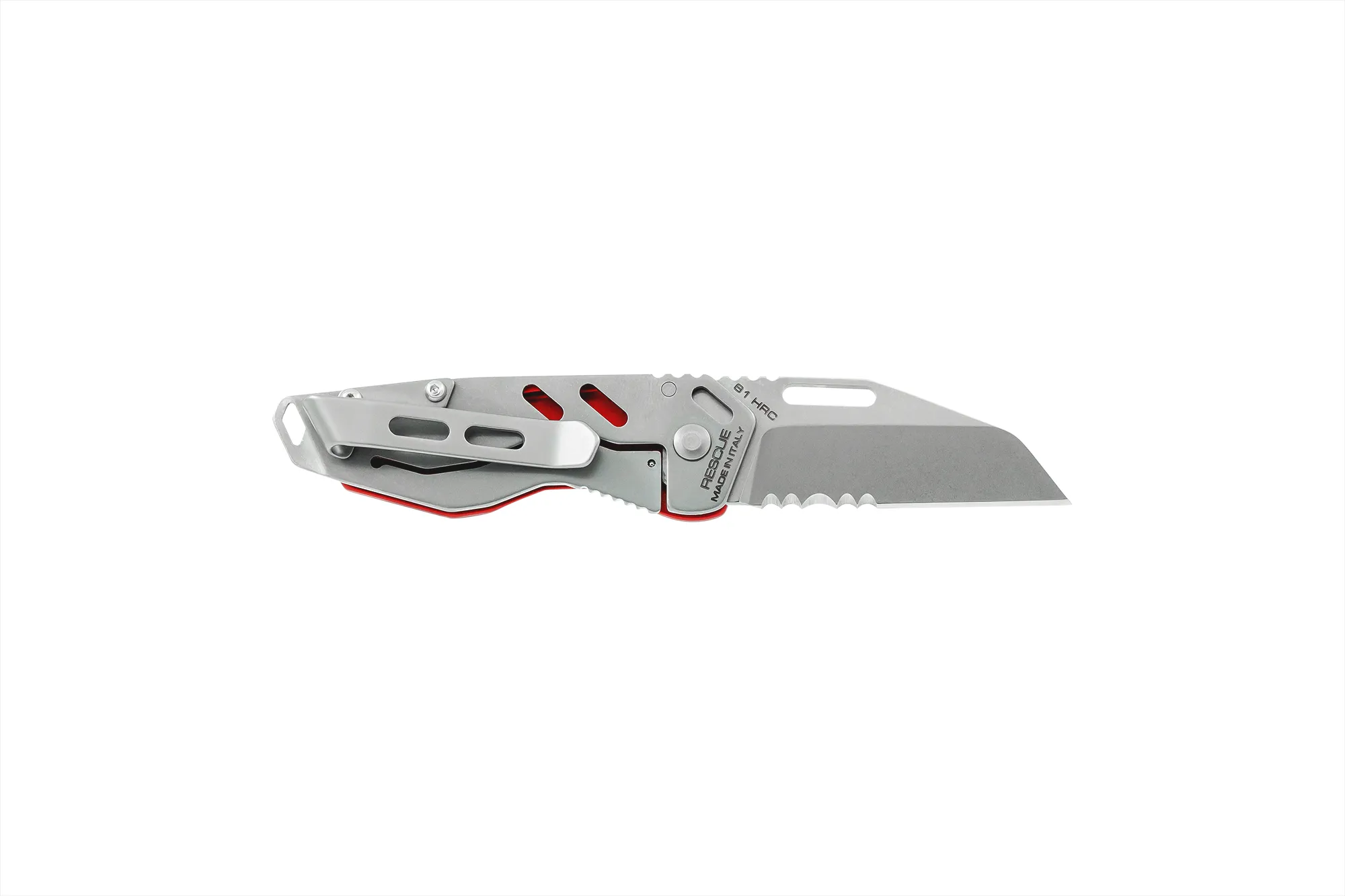 Ant Rescue, unlike the other 3 versions, has a red grip that allows the operator to find the knife more easily in the event of a fall. This version is equipped with a specific serration that allows it to cut ropes and even extremely strong aramid materials. This model also features a tapered shank that acts as an emergency screwdriver. Thanks to these peculiarities, Ant Rescue has been selected by the ‘Alpine Troop School of the Italian Army’ to be part of its equipment.