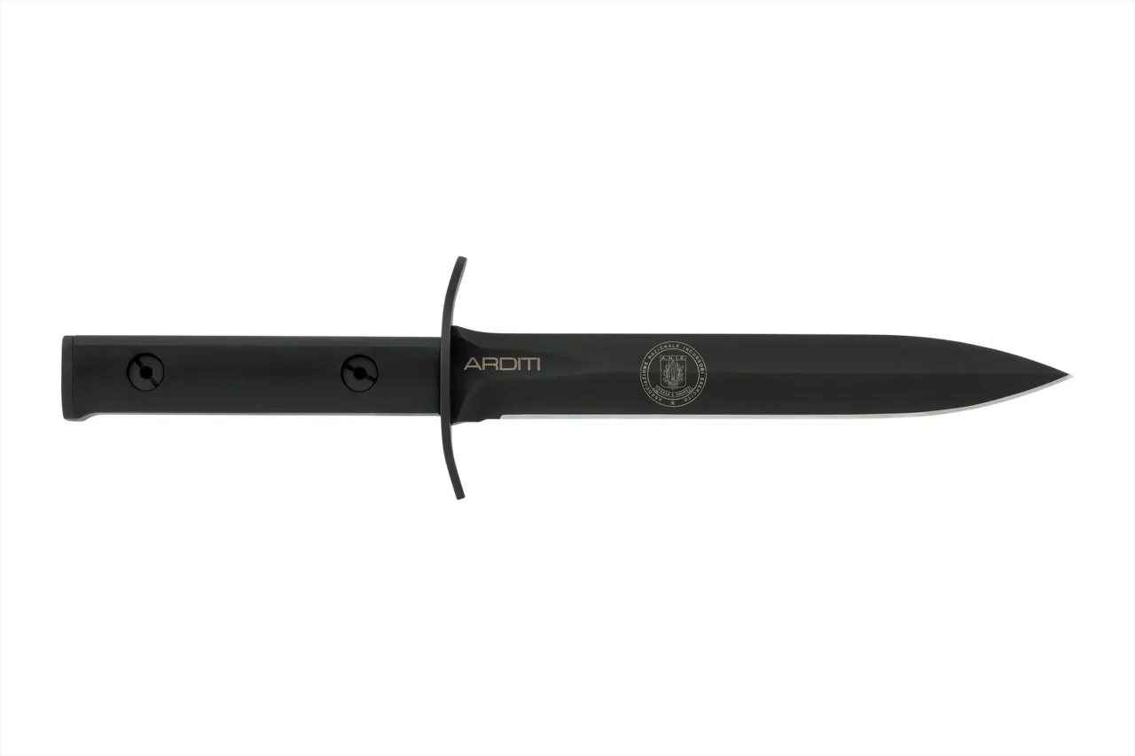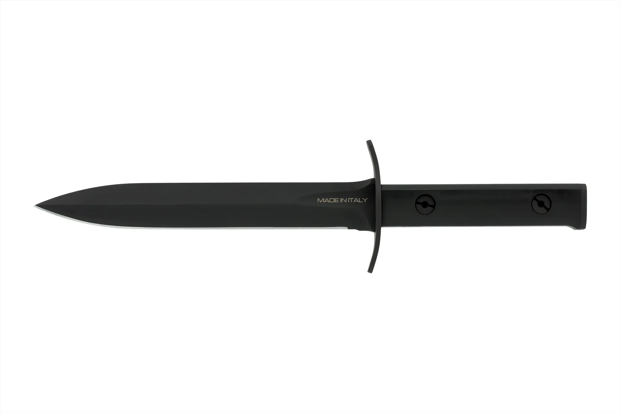 They made these knives by cutting off the tips of their long bladed “Vetterli” bayonets of 1870 which in the past had been problematic due to its long and unwieldly length. Today on the occasion of its centenary, we remember this important piece of Italian military history with a celebratory version of 1,918 pieces only. This version comes with black blade and a black cordura sheath. Should you like further history and background to this unique knife you may find more in the book "Storia dell'arma bianca italiana" by Cesare Calamandrei ISBN 978-88-253-0199-1