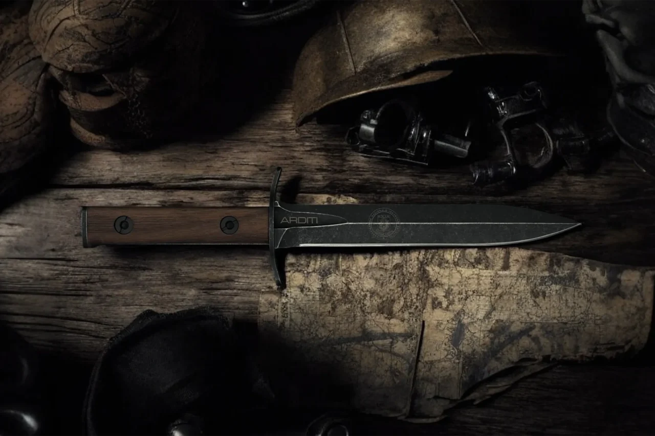 Their bayonet blades were therefore cut down and transformed into more compact and functional knives, essential tools designed for readiness in action.