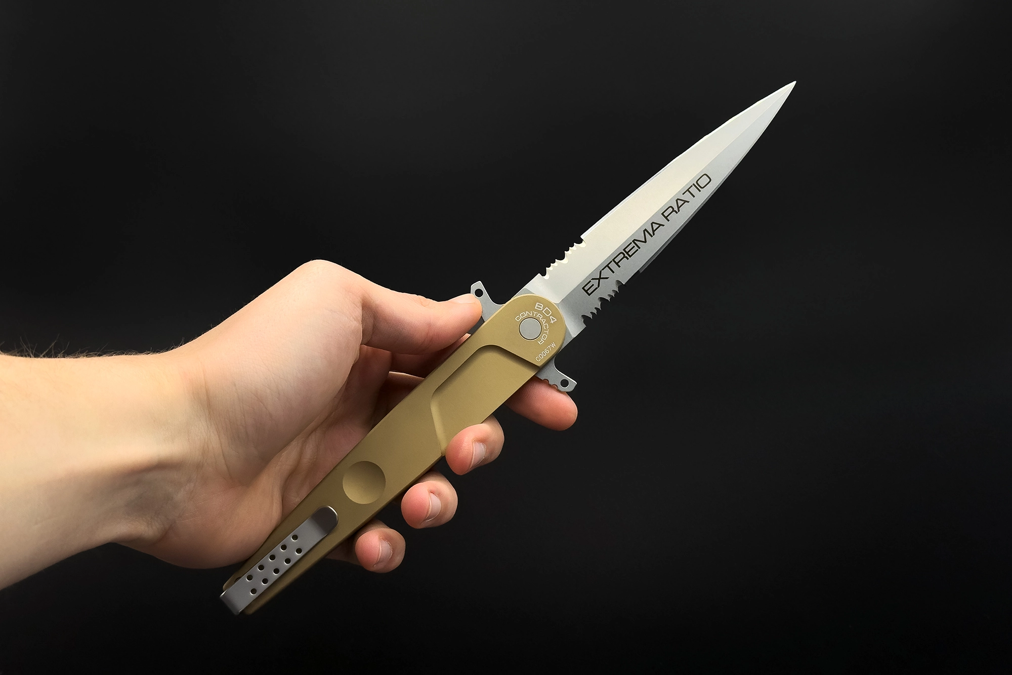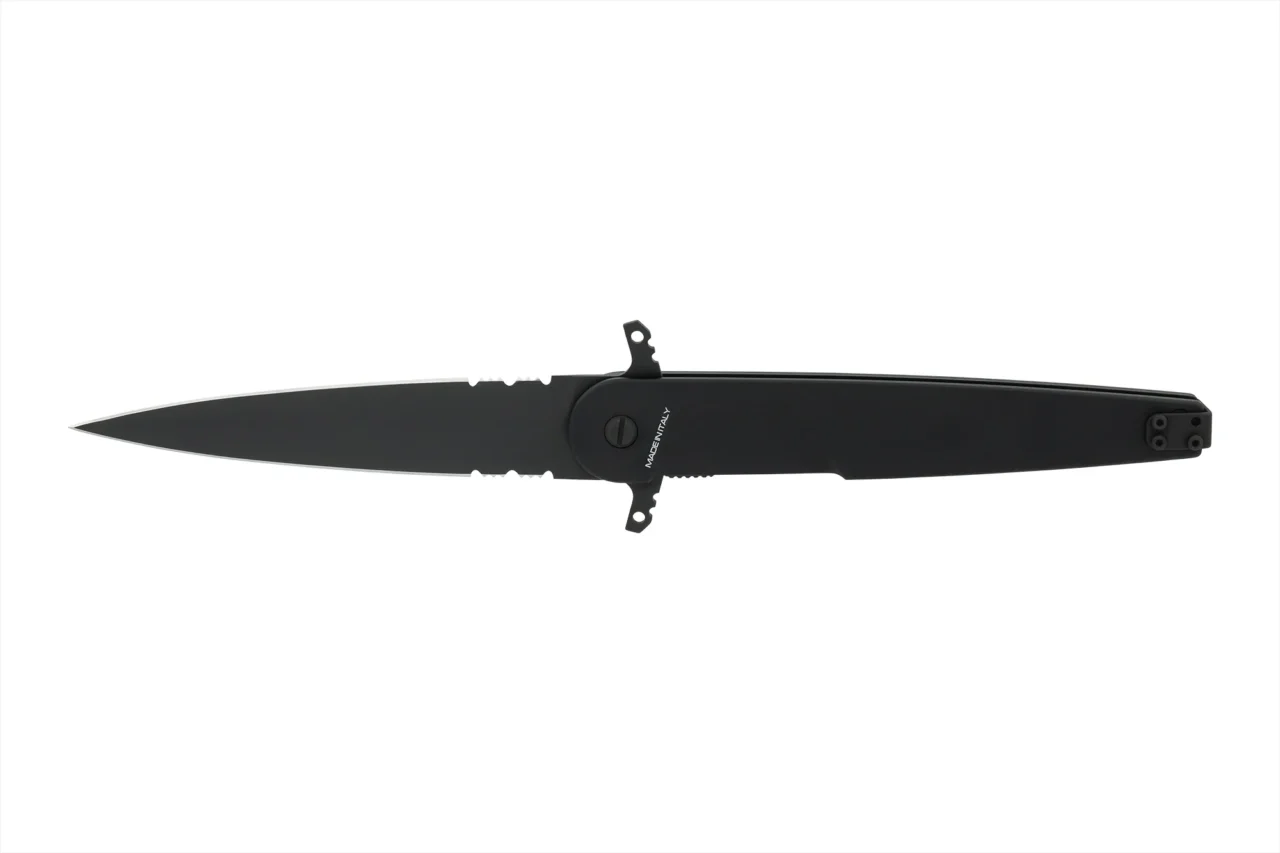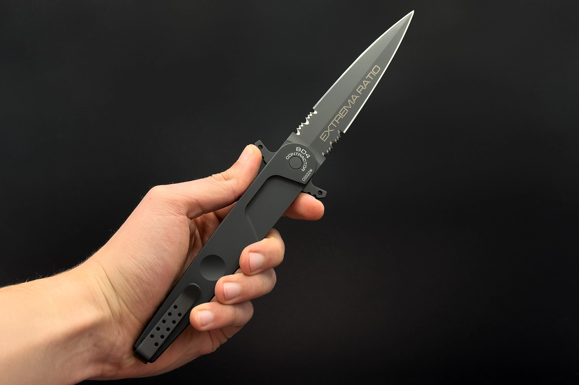 Both during development and in the subsequent decision to adopt it by the 17th Stormo Incursori, high priority was given to offensive capability, handling, and efficiency The BD4 Contractor is equipped with a double-edged blade featuring partial serration and a double guard. The clip, mounted on the anodized Anticorodal aluminum handle, allows the knife to be attached to military gear and to the specific sheaths issued to special forces. The blade shape is designed to ensure effective cutting and penetration. BD4 Contractor is available in 2 versions: