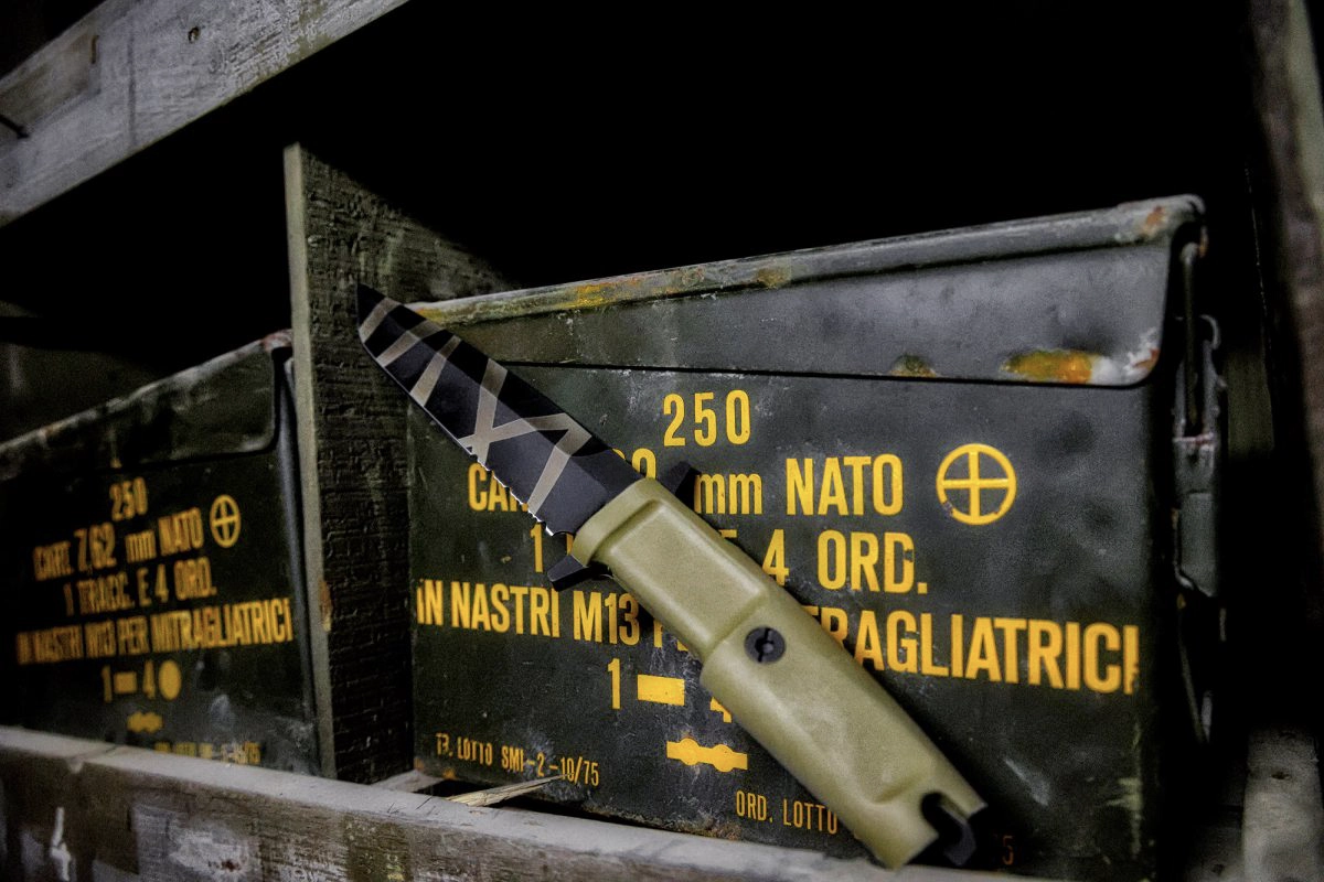 Made to order for the renowned 9th Parachute Assault Regiment “Col Moschin” of the Italian special forces, which officially adopted it in 2002, this is a quintessential combat knife. It represents a contemporary reworking of daggers issued to the Arditi