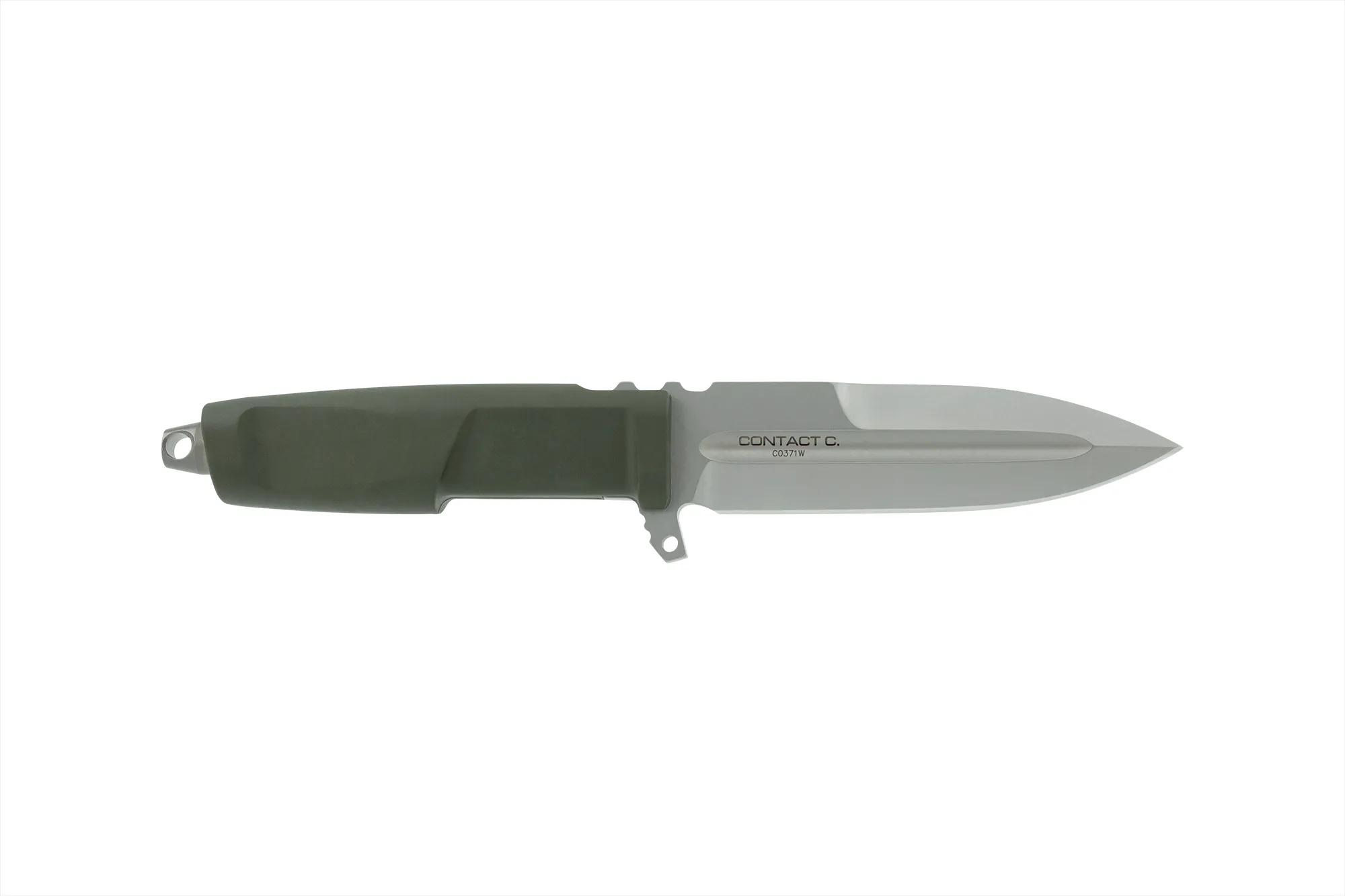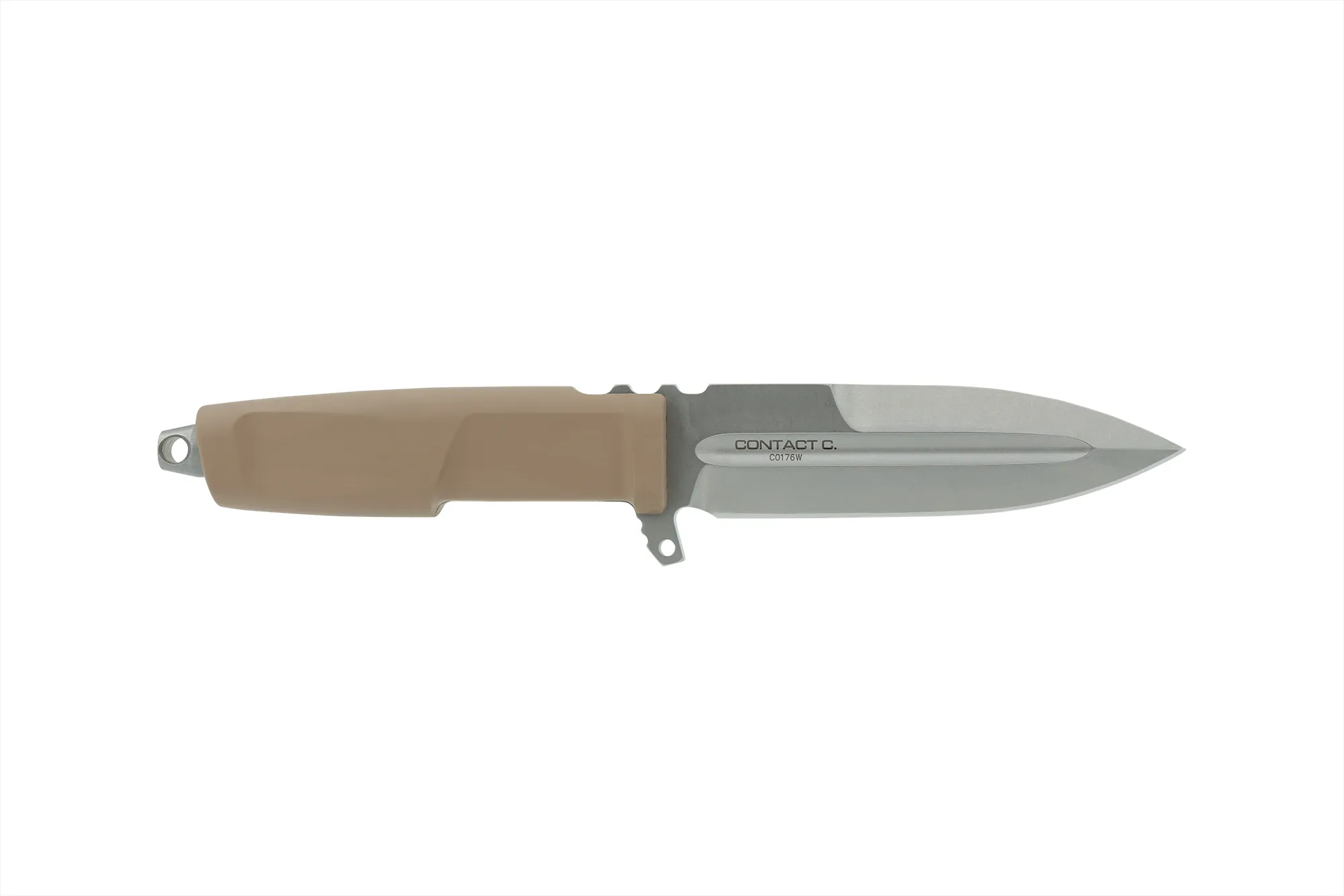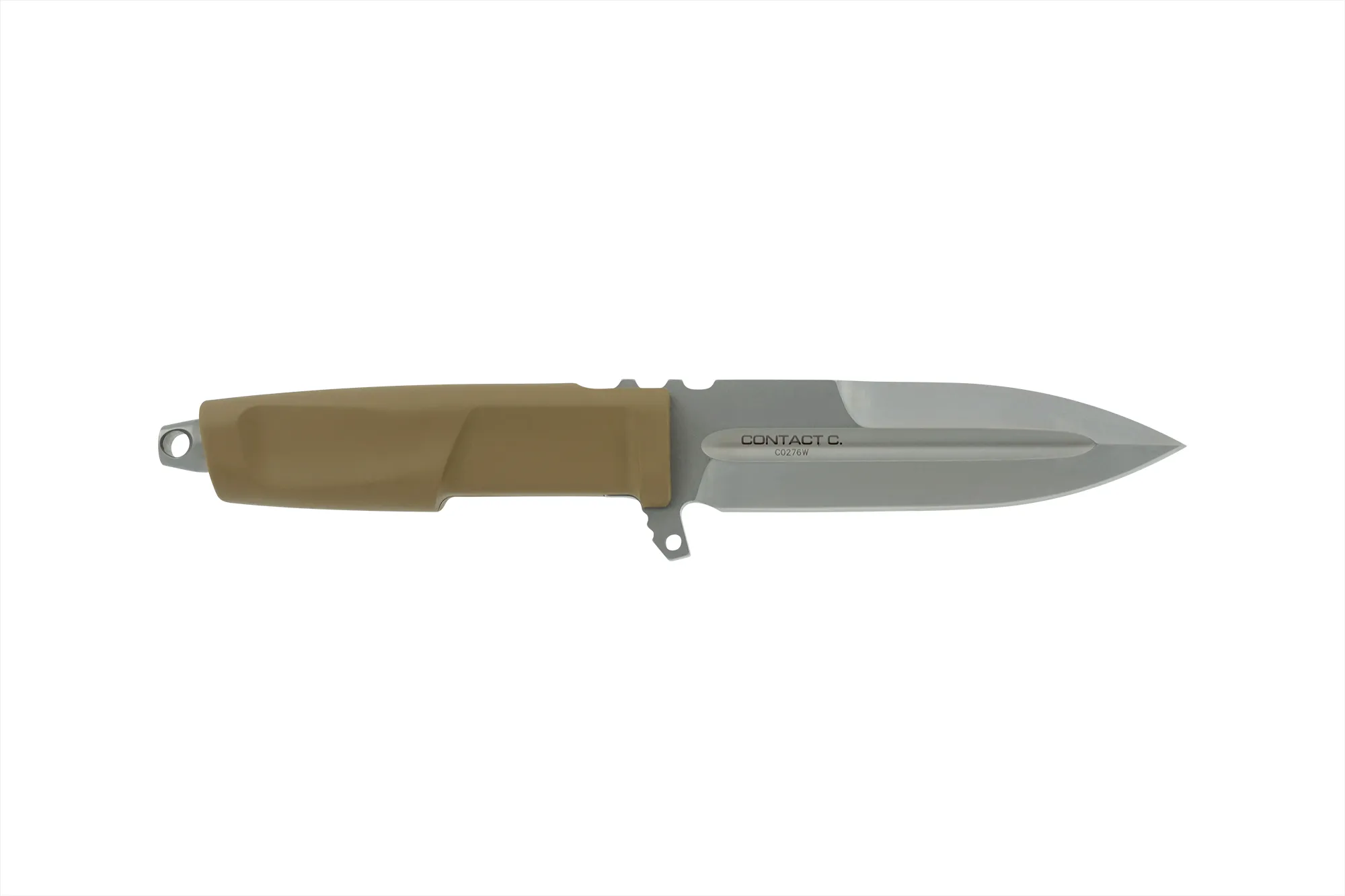Compact version of the CONTACT, the CONTACT C has a Böhler N690 steel spearpoint blade, hardened at 58 HRC with single branch handguard and full length fuller for lightness.