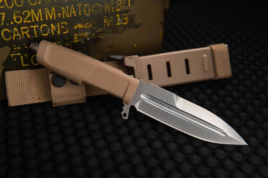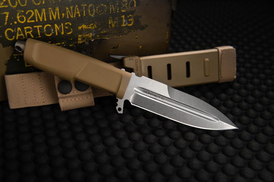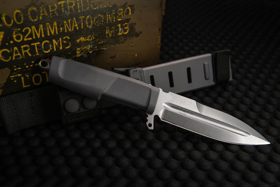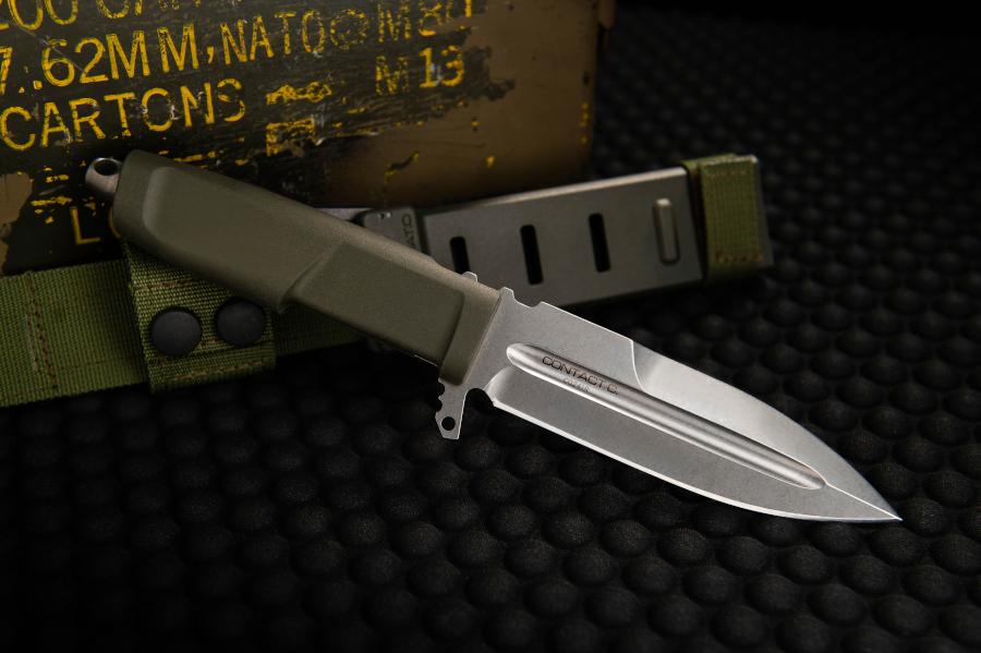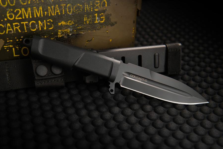 Compact version of the CONTACT, the CONTACT C has a Böhler N690 steel spearpoint blade, hardened at 58 HRC with single branch handguard and full length fuller for lightness.