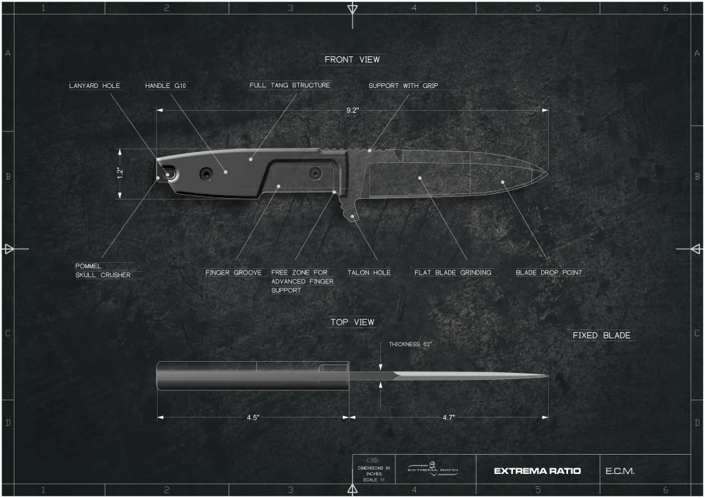 EXTREMA RATIO E.C.M. (Einsatzkommando Cobra Messer) is a fixed blade multipurpose knife, designed for operational uses for the renowned special unit Einsatzkommando “Cobra” of the Austrian police, whose logo is laser engraved on the heel of the blade.