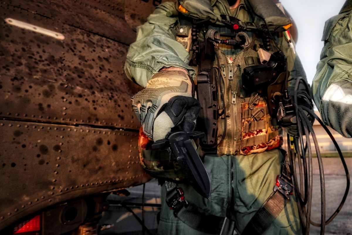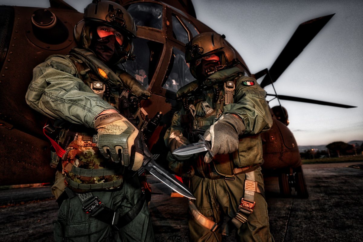 ERMES is the commemorative knife designed with the Special Operative Helicopter Regiment (R.E.O.S.) which is part of the Italian army aviation.