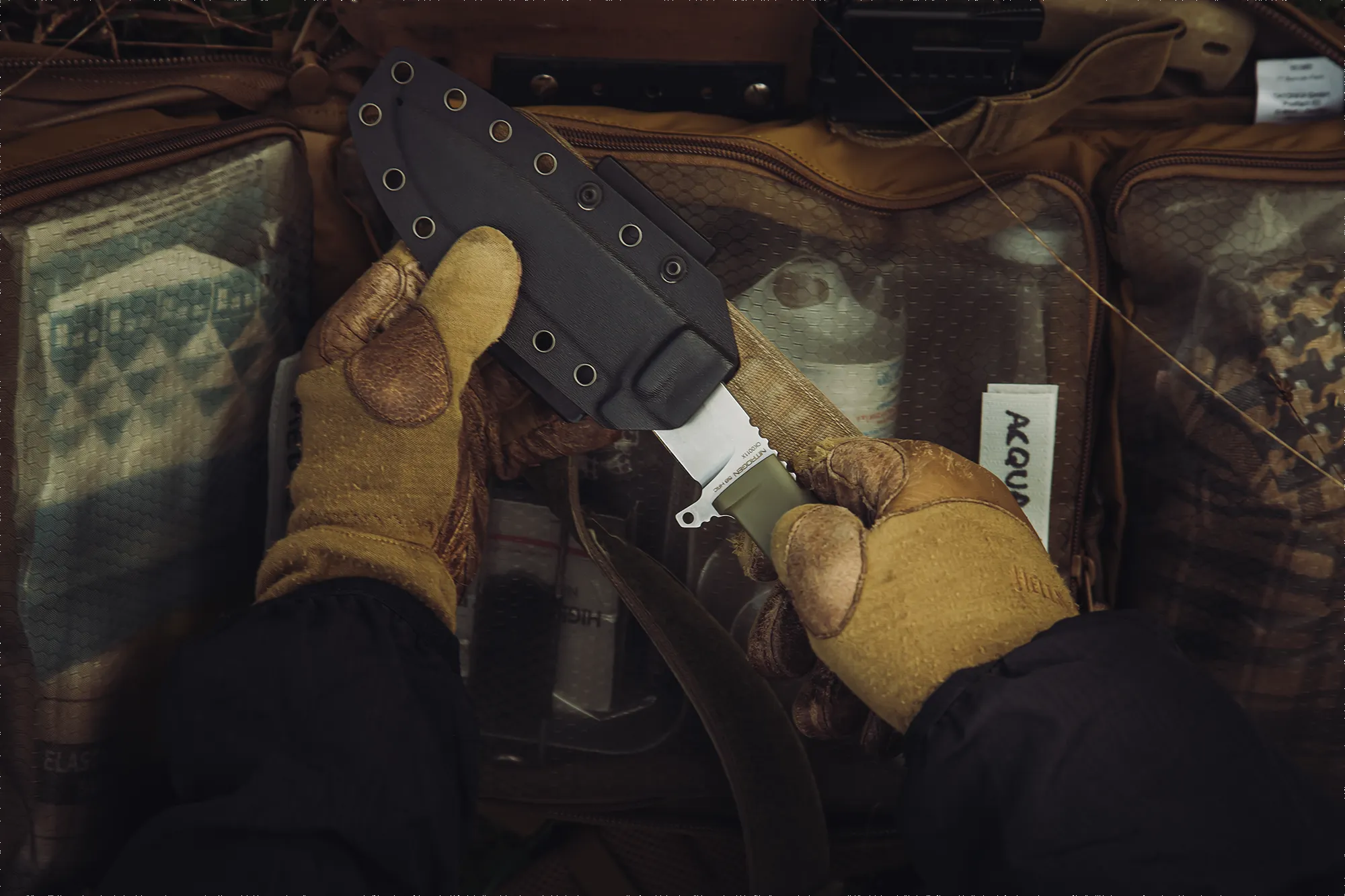 Completing the system is a thermoformed Kydex sheath, lightweight and durable, which does not absorb water and requires no unnecessary maintenance.