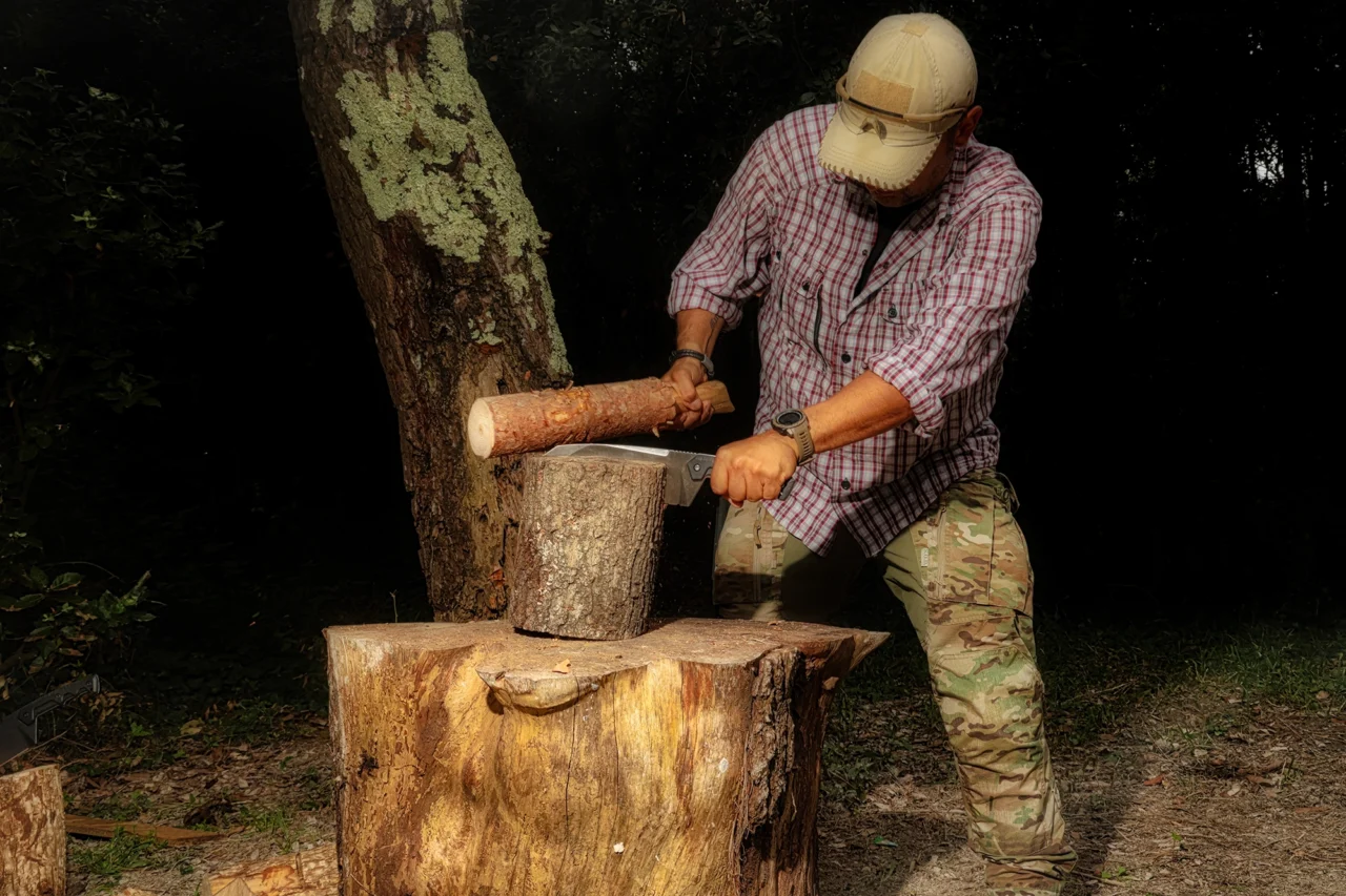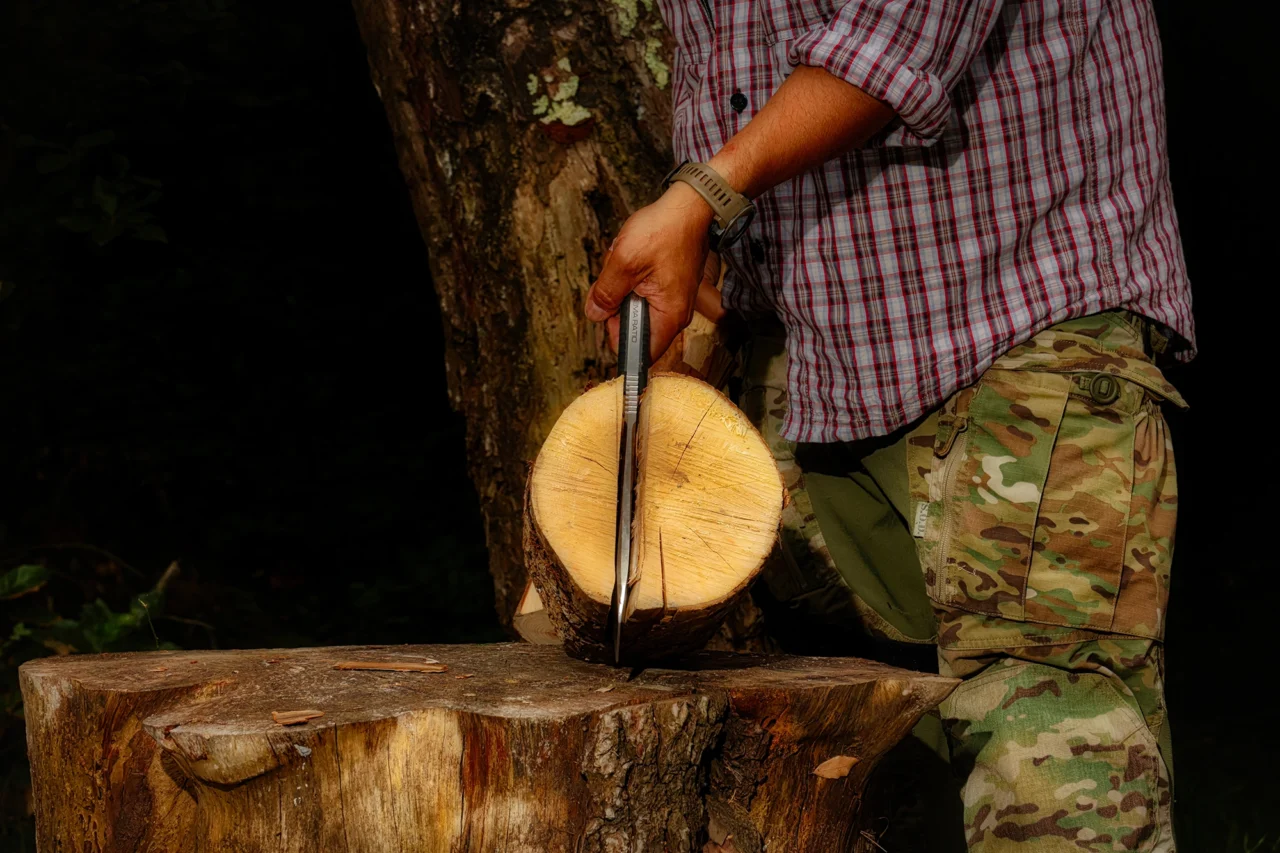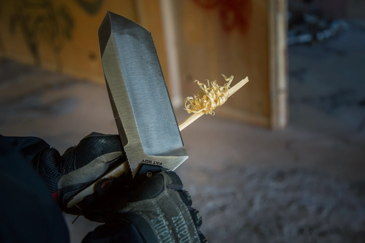 These spectacular features turn into pure fun if we move Fat Boy outdoors, where prepping, chopping and batoning become just formalities.