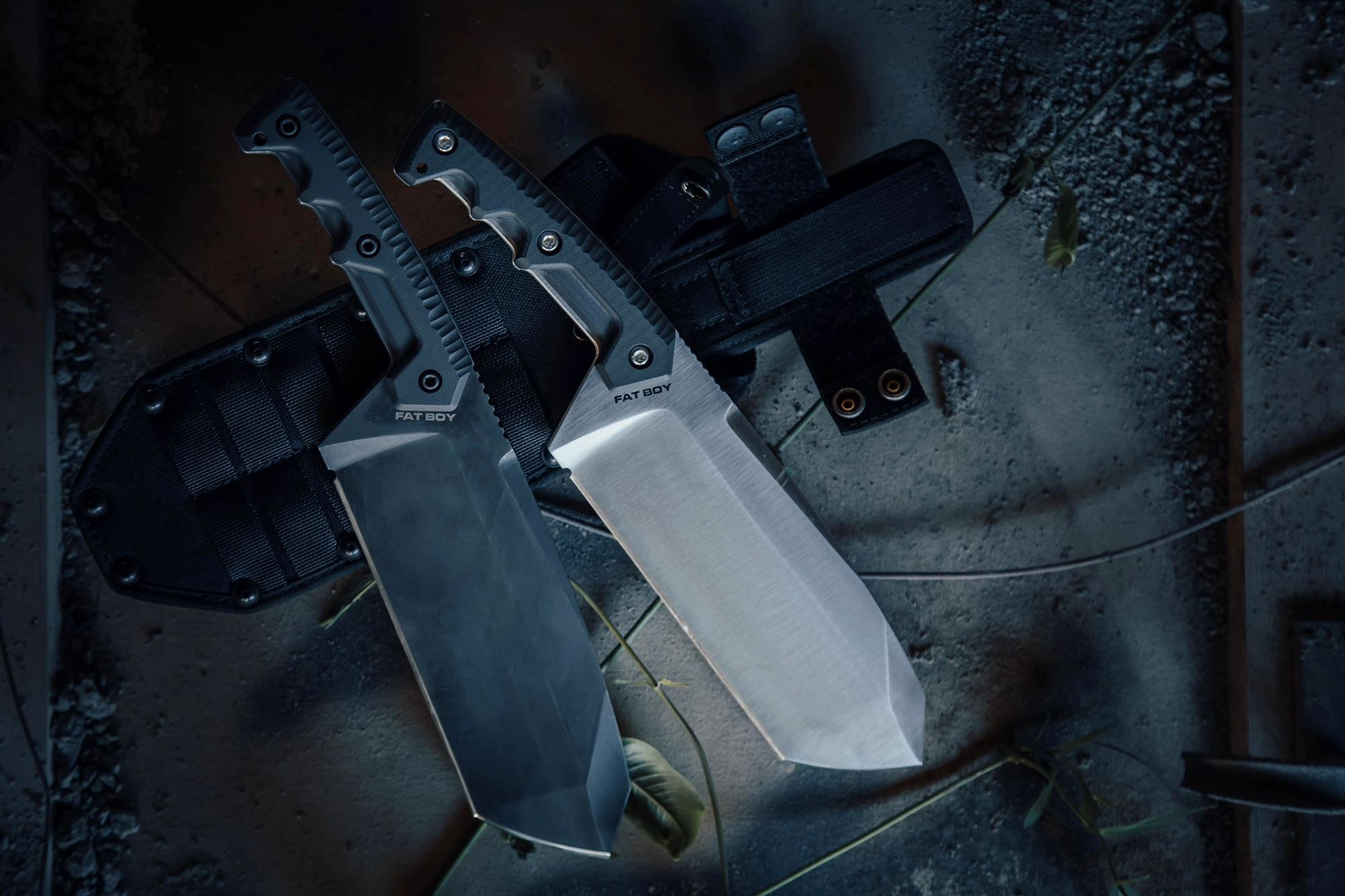 Fat Boy is available in Satin and Dark Stone, both equipped with a black Cordura sheath with an anti-cutting rubber blade lock. The MOLLE system on both sides can be used by both right-handed and left-handed, depending on the side where the two thigh vertical strips for height adjustment are positioned. This system allows you to attach accessories, pouches, or an additional back-up knife, offering the possibility to easily move all the accessories from one side to the other. All sheath components can be individually replaced.