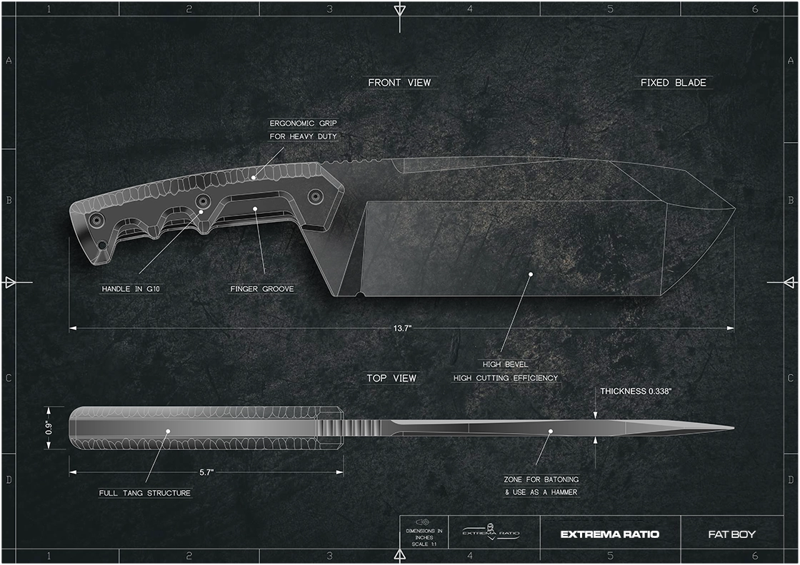 Extrema Ratio has committed to the creation of Fat Boy with the usual determination that distinguishes us, combining extreme thickness and design to obtain an unparalleled product, an innovative and bold solution.