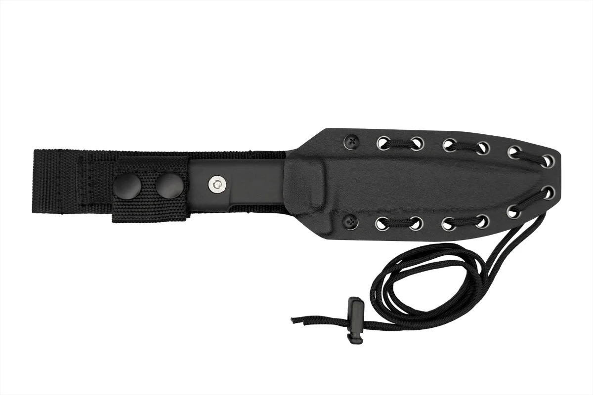 Completing the system is a sheath with an adjustable textile extension for belt carry and paracord for thigh carry configuration, compatible with multiple accessories for various carry setups: