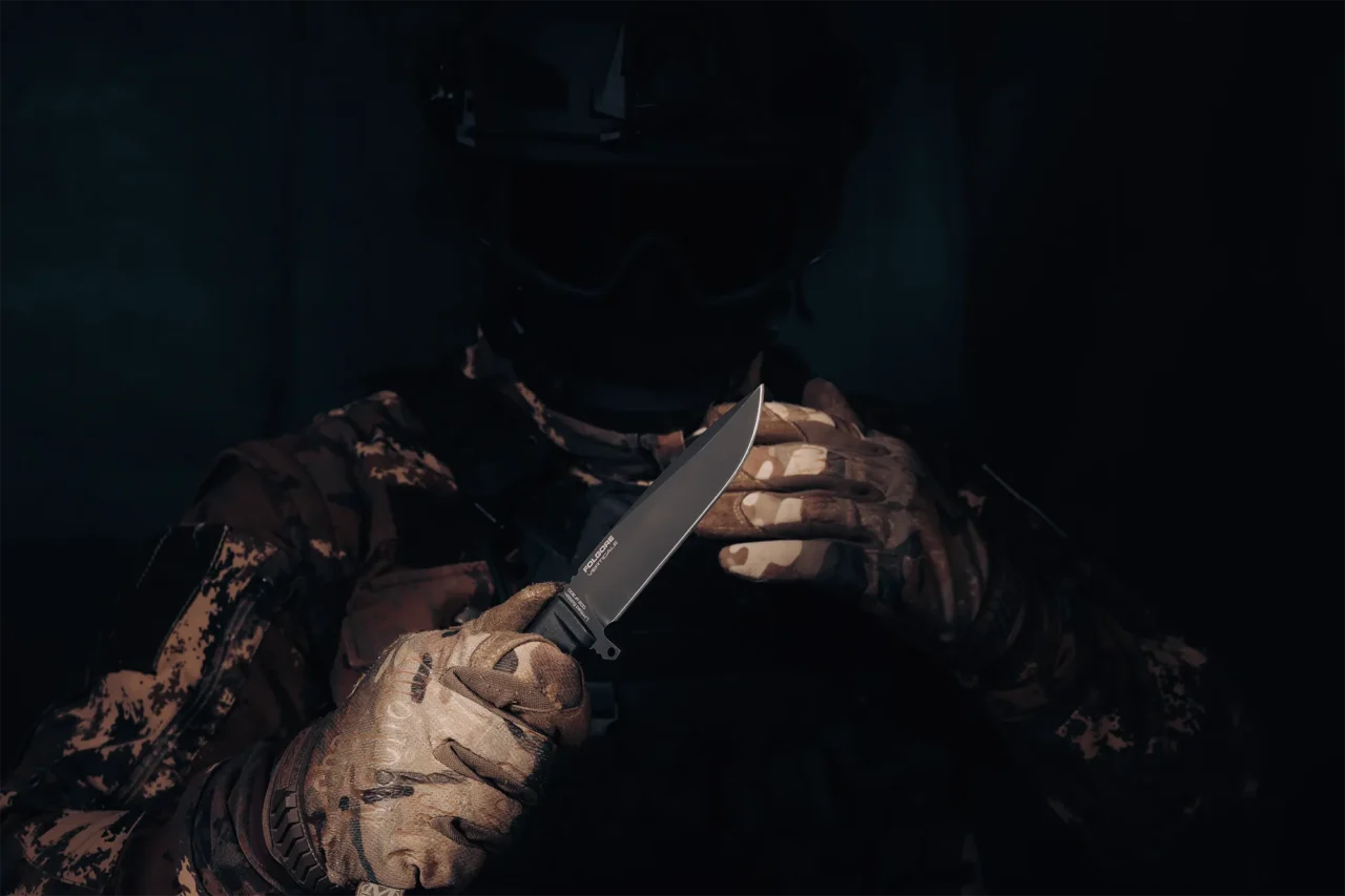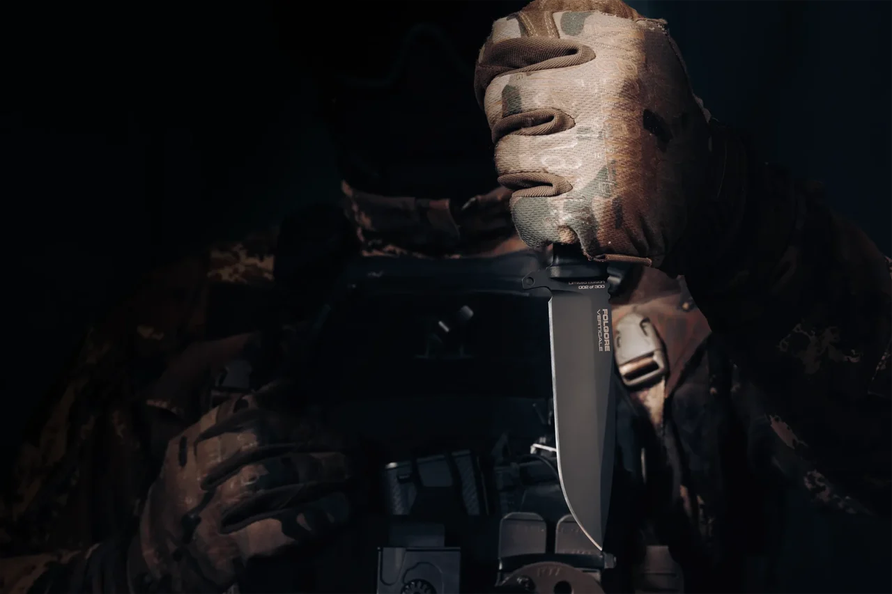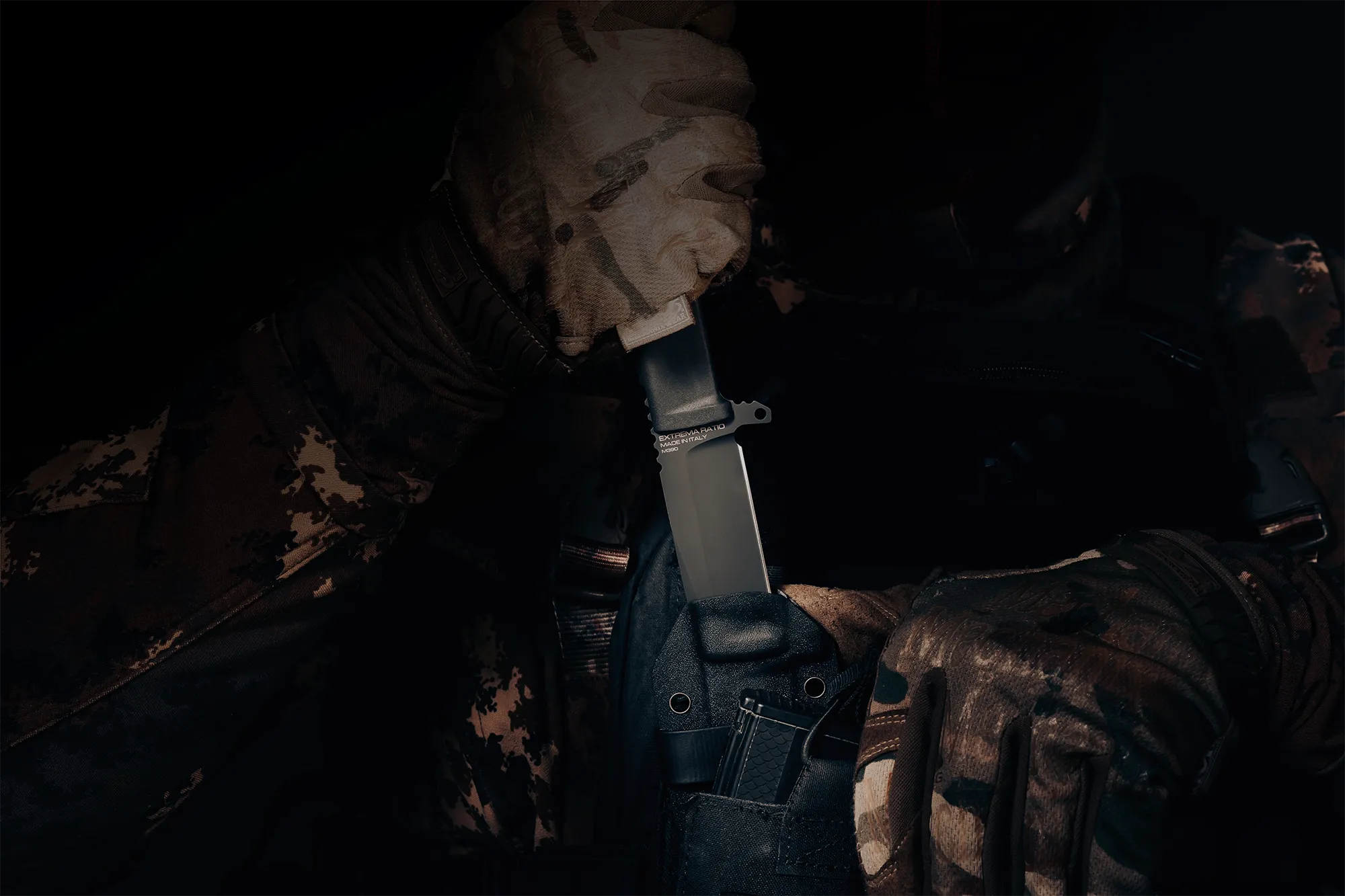 Operational altitude. Thin air. Silence. The body descends vertically; every movement is control. No margin, no second chances. In that moment, everything you carry must work. No unnecessary weight. No compromise. FOLGORE VERTICALE is the technical evolution of a project developed to operate in environments where every gram and every millimeter make a difference. The name reflects the vertical discipline of military parachuting: a phase where precision, control, and discipline define survival. It shares the DNA of the FOLGORE model, born from a collaboration with the Italian Army Paratroopers Brigade “Folgore” and developed through field testing alongside qualified operational personnel. Nothing more needs to be said. Those who know, choose it. Balance, speed, control The blade is made of Böhler M390 steel (61 HRC), a choice that ensures extreme resistance, edge retention, and uncompromising reliability. The dark finish eliminates reflections, defining a tool that is technical, essential, and purely operational. Weight is reduced to the absolute minimum. Less fatigue during extended carry, even in full tactical loadouts. More speed. More control. More immediacy. FOLGORE VERTICALE is designed to go unnoticed. Until it’s needed. The drop point blade and ergonomic handle ensure total control for movements that are clean, controlled, immediate. Limited Edition FOLGORE VERTICALE is a Limited Edition of only 300 numbered pieces. Once gone, no more.