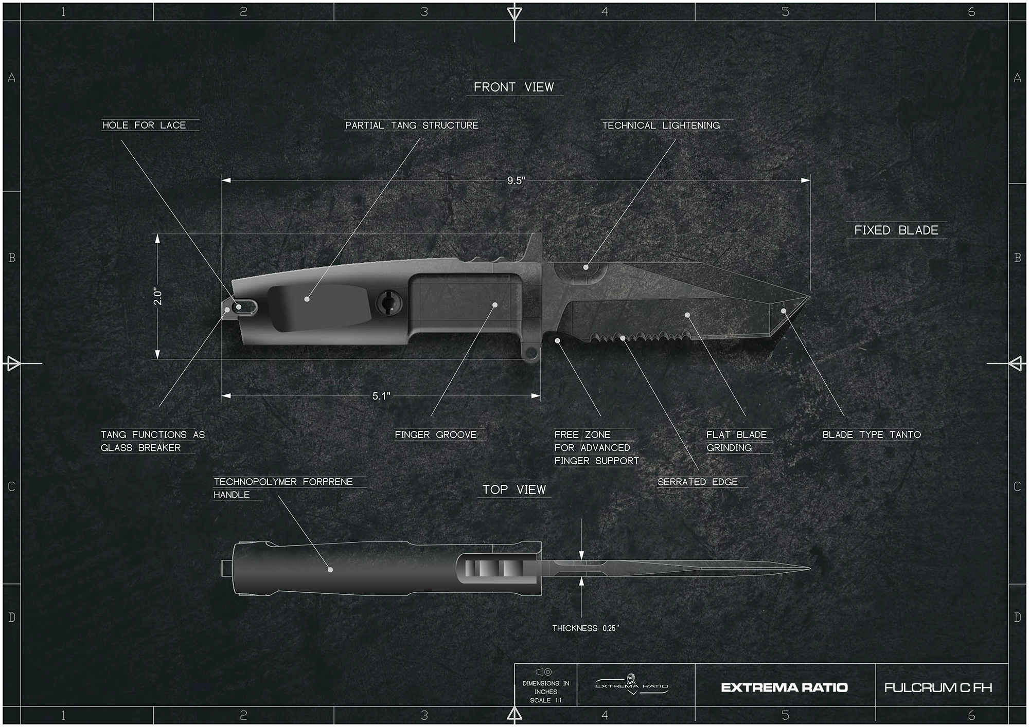 FULCRUM C is the compact version of the FULCRUM, which it equals in robustness and sturdiness. Its downsized blade (only 4″ 1/3 long) and handle make it comfortable to carry and easily concealed.
