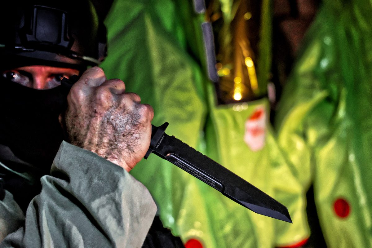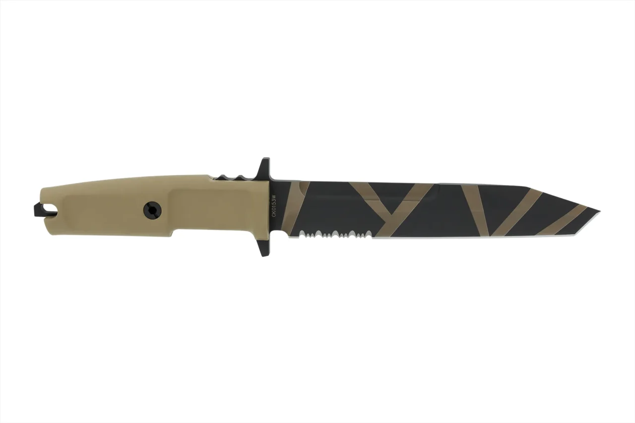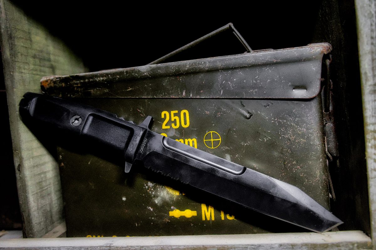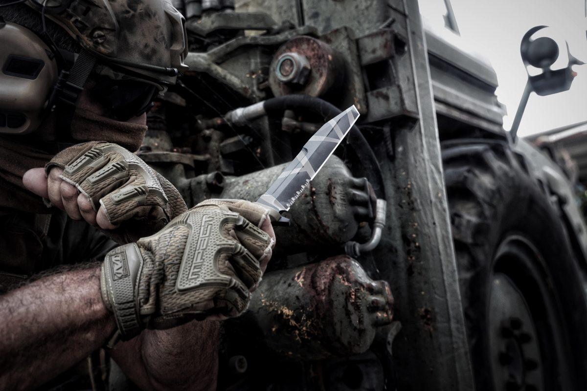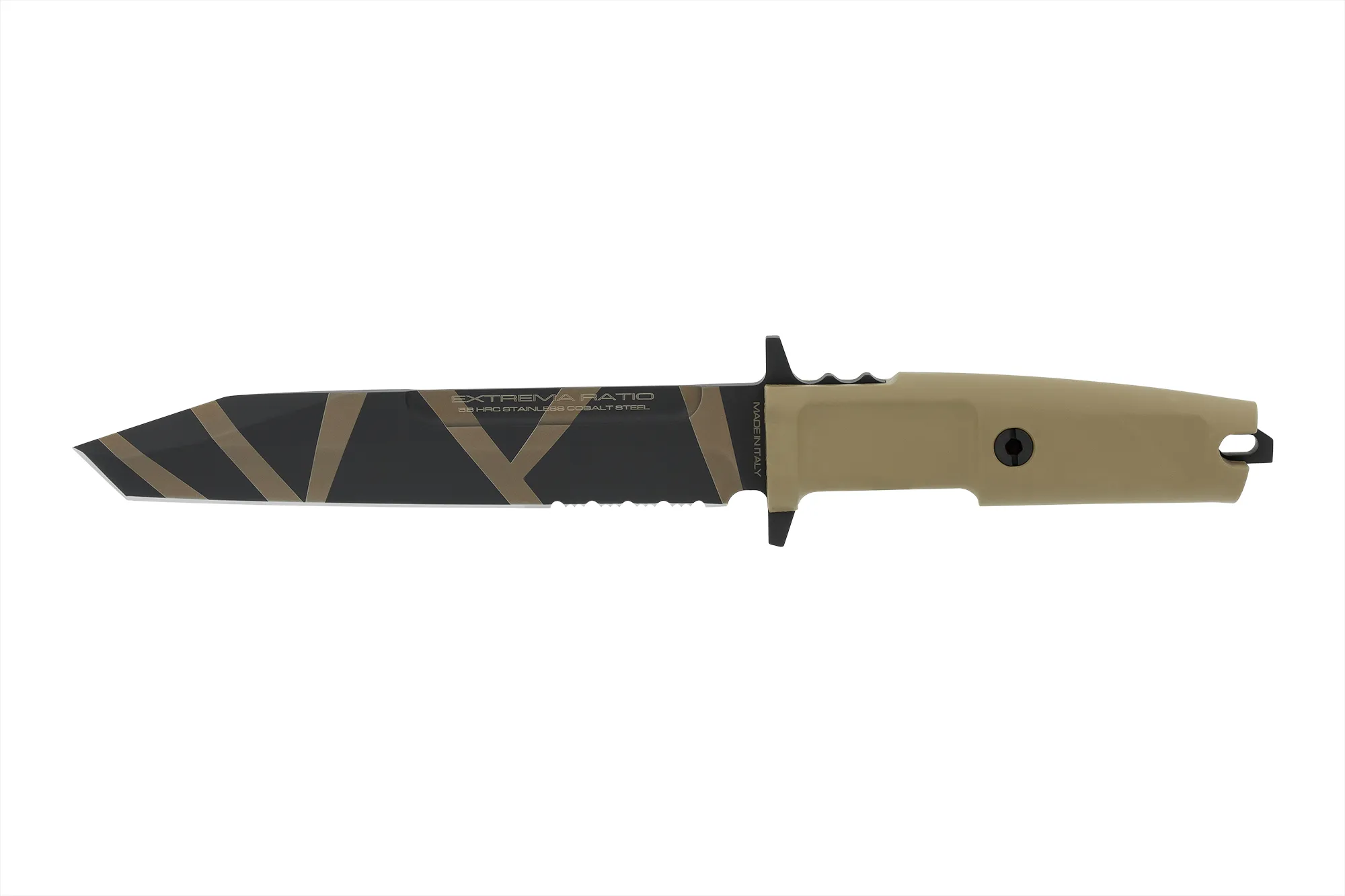 As part of preparing for the mission, COMALP coordinated a team of companies toward creating a full experimental set of newly designed equipment for the individual trooper. Extrema Ratio was chosen by COMALP to develop a new multipurpose knife suitable for the infantry – a knife to be used in any operations anywhere, capable of successfully completing tasks that more specialized tools fail at. So successful were we that after this multipurpose knife followed the development of the Fulcrum Bayonet, an implementation of the same which can be mounted onto a trooper’s standard-issue rifle. An extremely tough and versatile knife, the Fulcrum’s blade can sustain loads of over 150 kilograms without breaking. The tanto-shaped blade allows for large amounts of work and wear while still retaining a sharp, penetrating edge at its exceedingly sturdy tip. Thanks to its weight and top-heavy balancing, the Fulcrum is also suitable for hard work on the field. Available versions: FULCRUM BLACK, FULCRUM DESERT WARFARE.