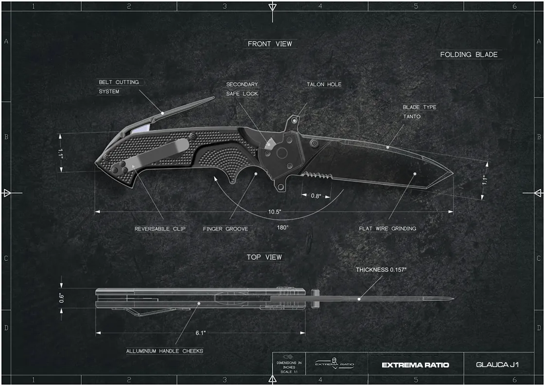 The blade-tip is designed to maximize penetration. It also features a glass-breaker, a clip with three attach positions and a safety lock. Its handle is produced with a particular finishing, improving its grip.