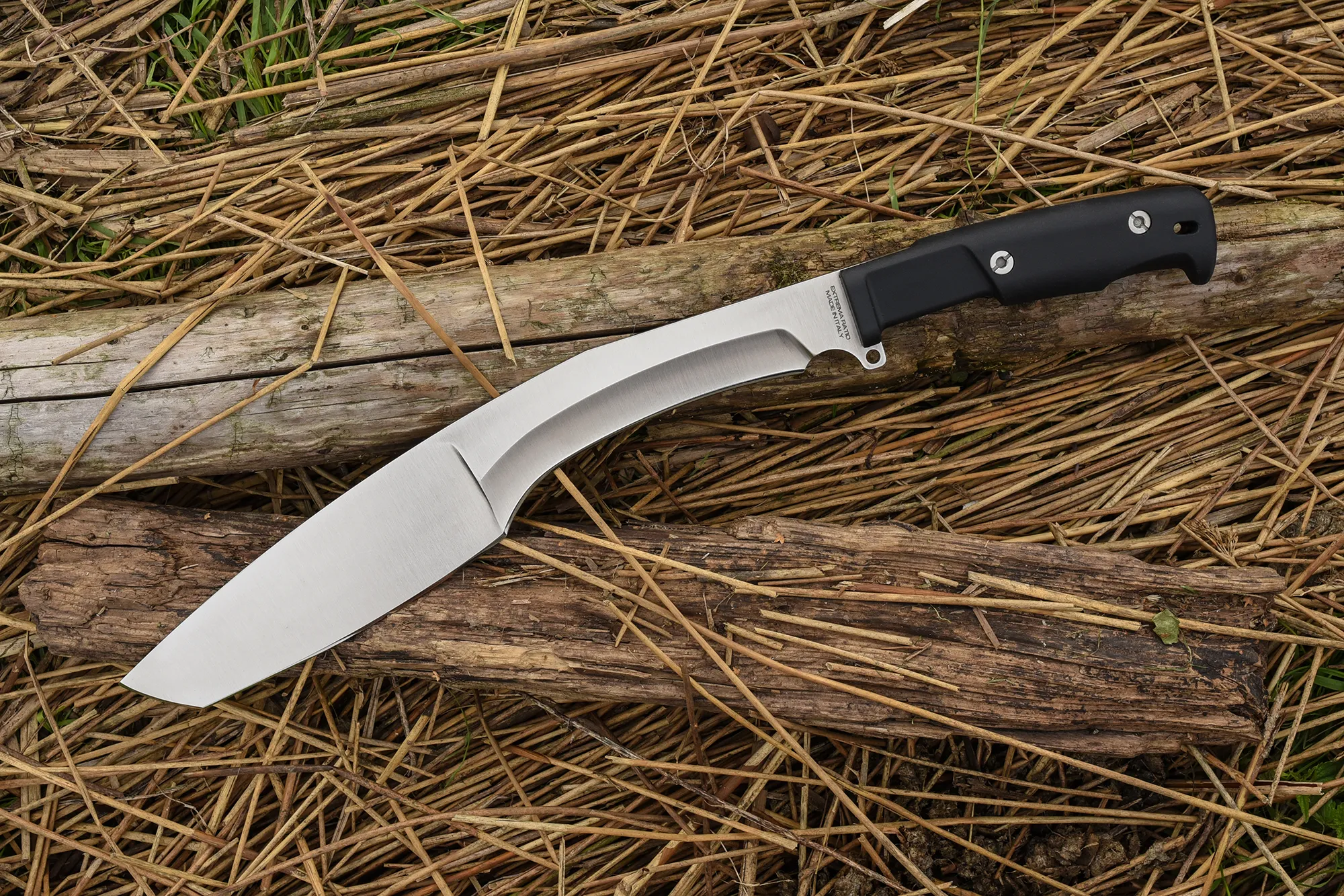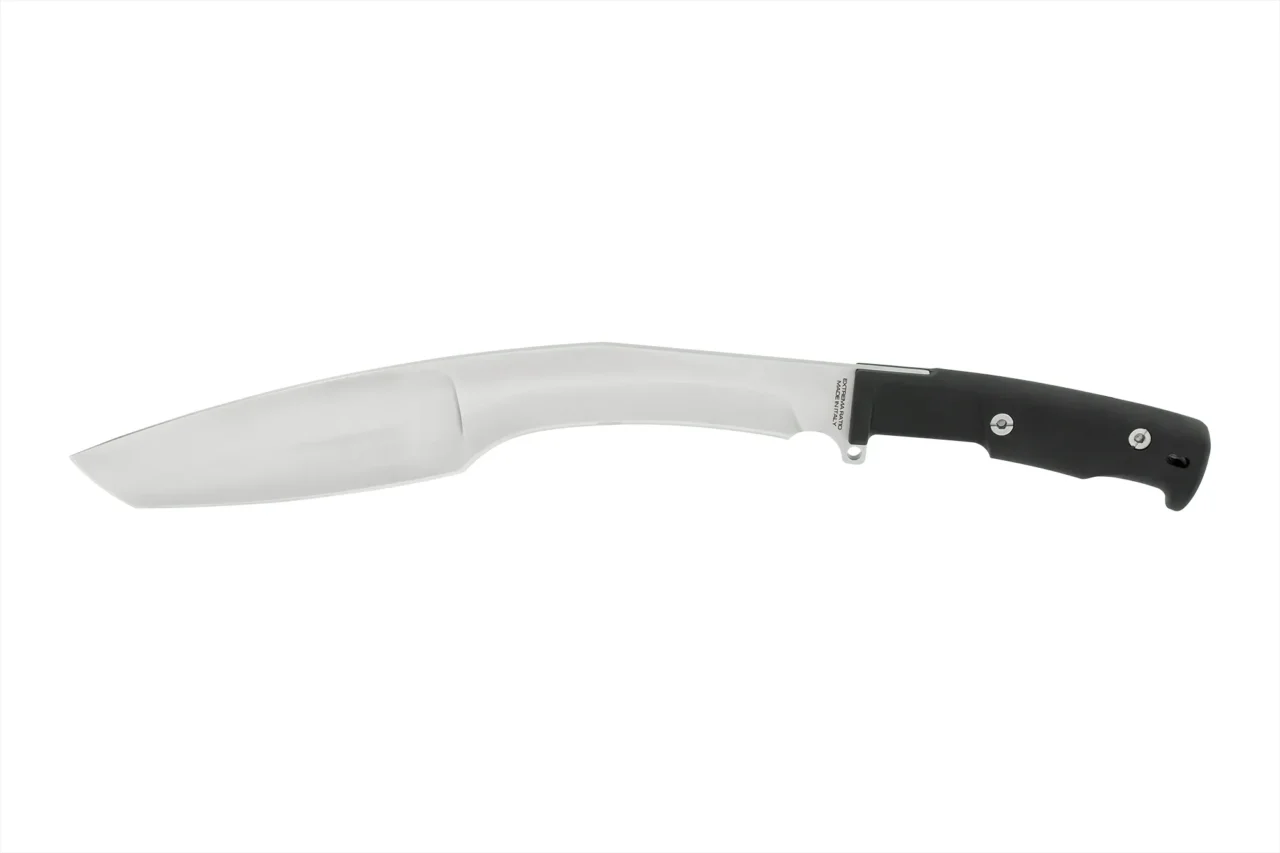 There’s a reason it’s a classic. Made famous by the Gurkha regiments serving under the British crown, the “kukri” is a Nepalese all-purpose blade descended from ancient Greek sickle-shaped swords. It’s ultimately a machete with a top-heavy, forward-positioned cutting edge, which enables it to function as an axe while retaining the versatility of a long blade.