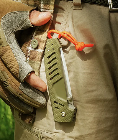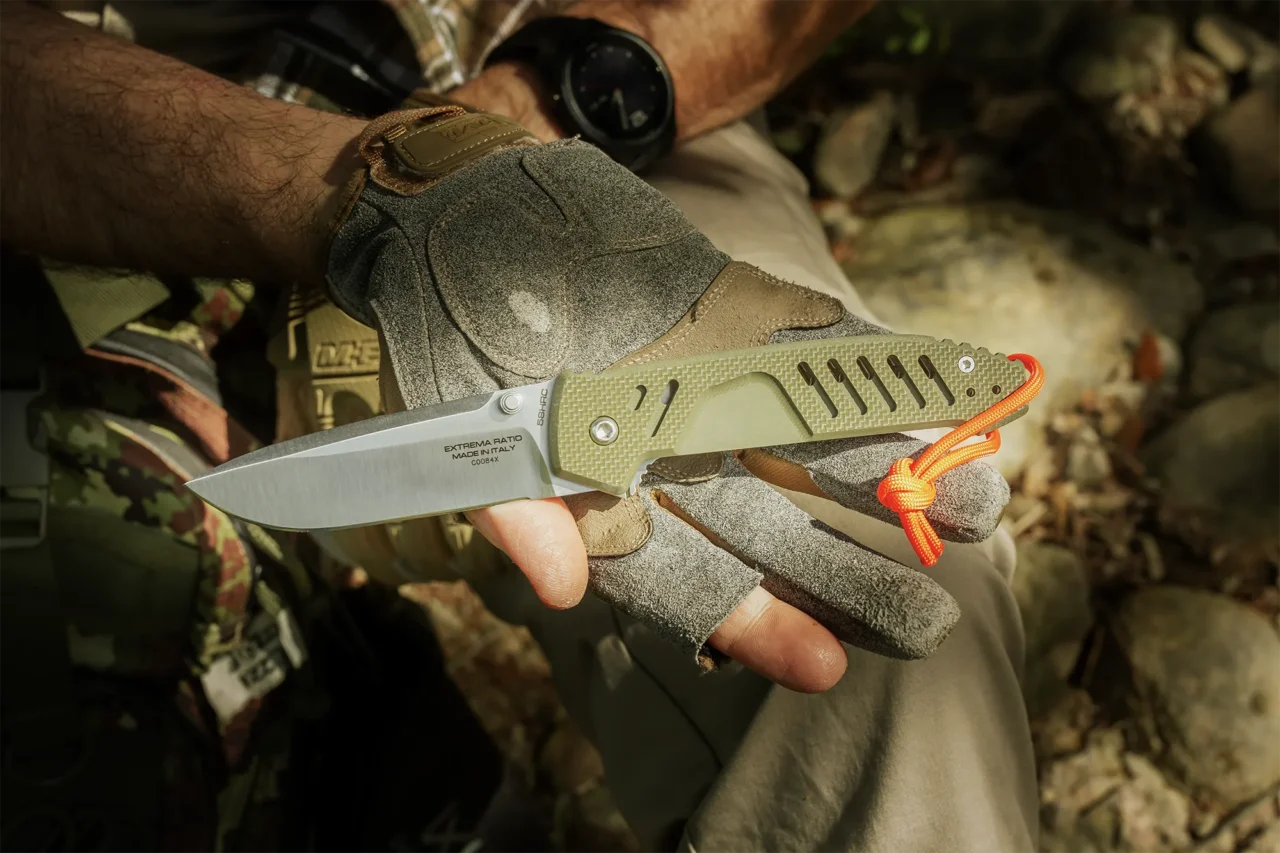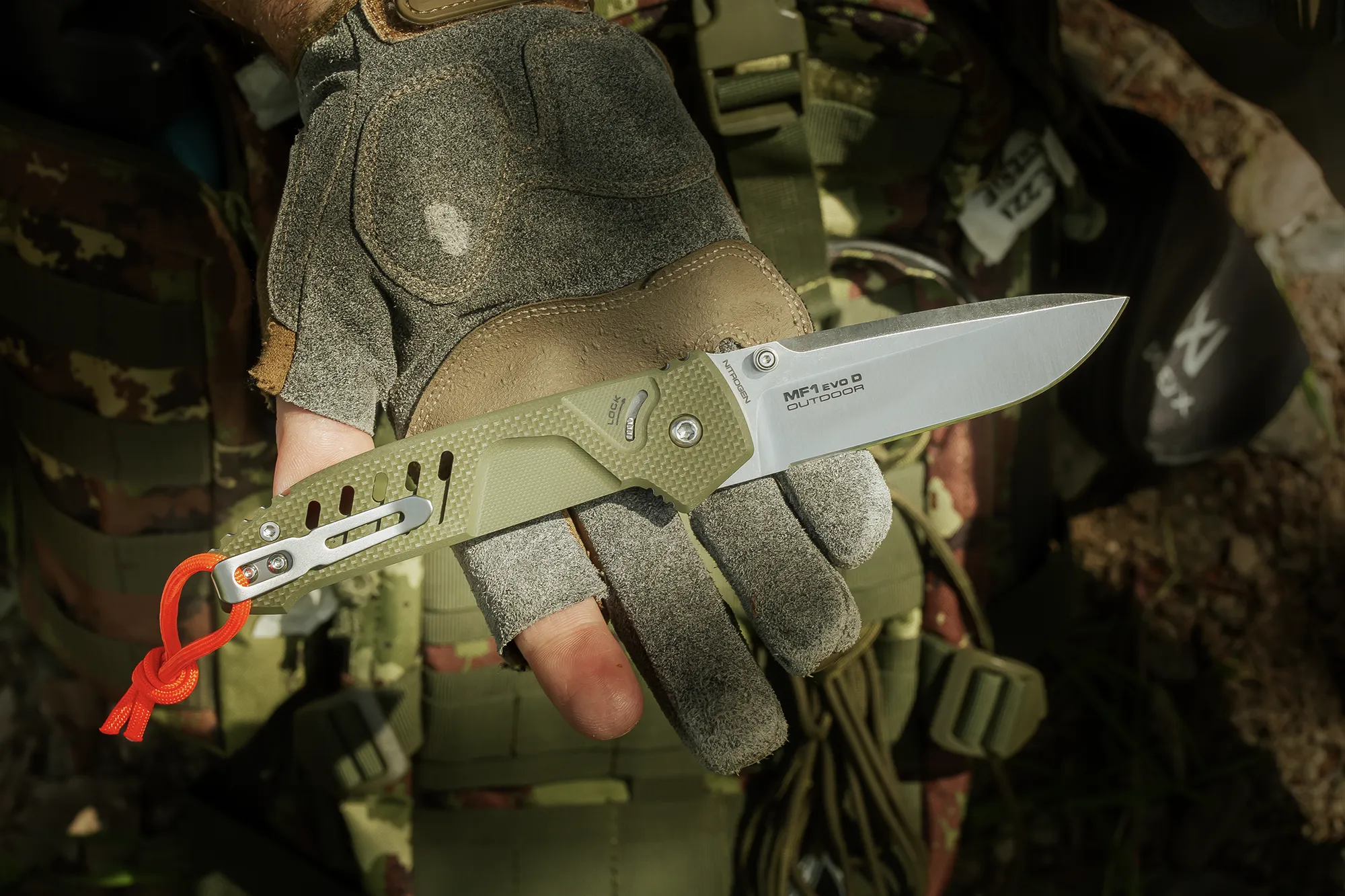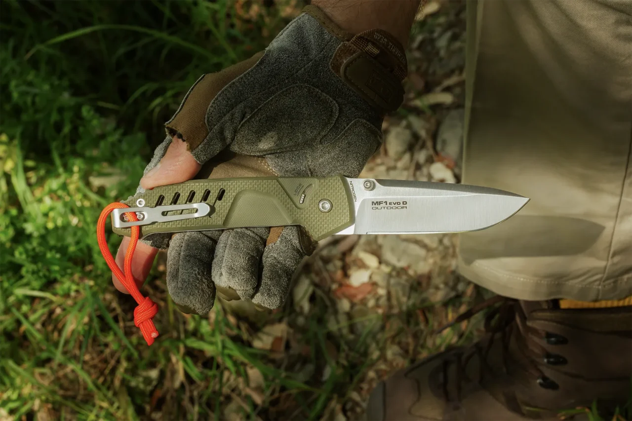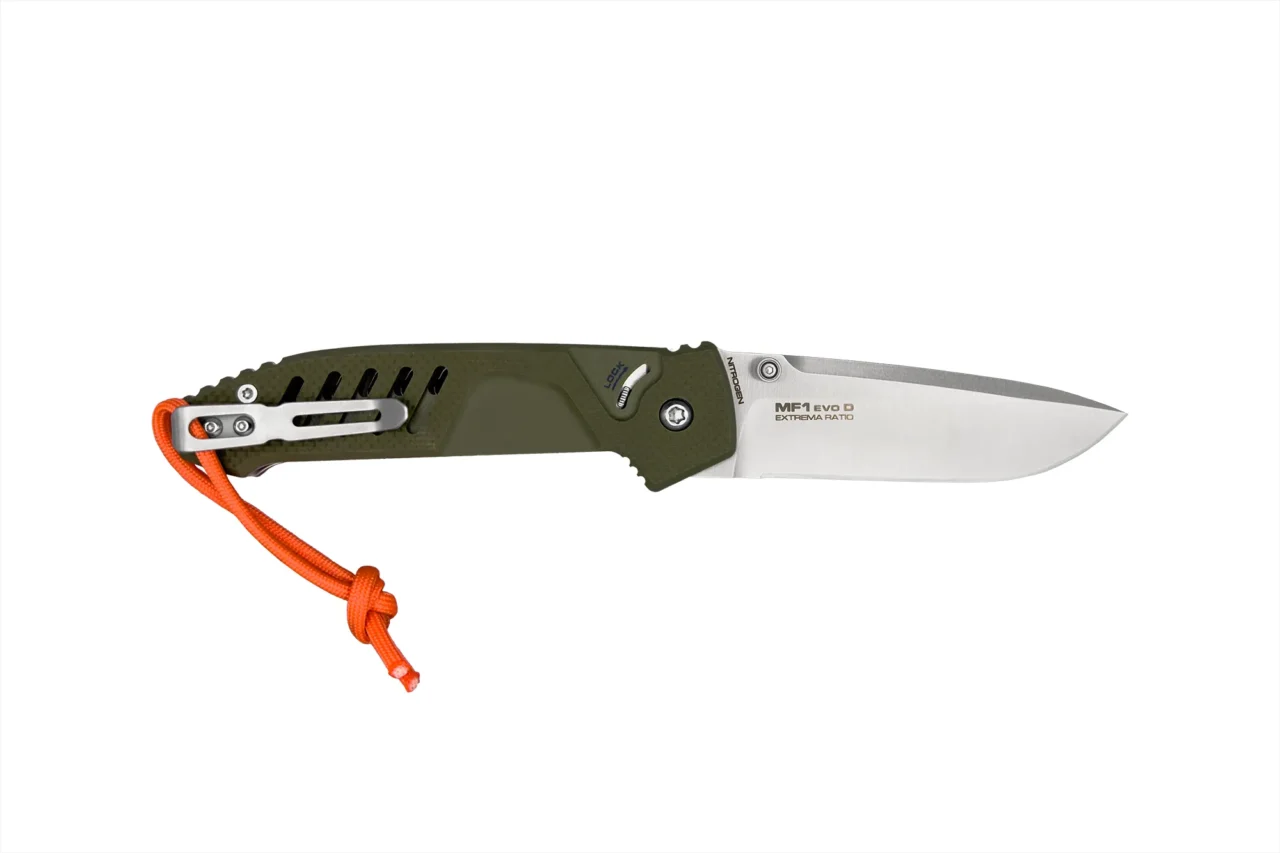FIELD READY Some tools you carry just in case. This one you carry because you know you’ll need it. Built for the outdoors – woods, fields, rough terrain. MF1 EVO D OUTDOOR takes the MF1 EVO platform beyond the urban environment, fully embracing the identity of Extrema Ratio Outdoor line. Green G10, Nitrogen steel, high-visibility orange paracord. Always with you.