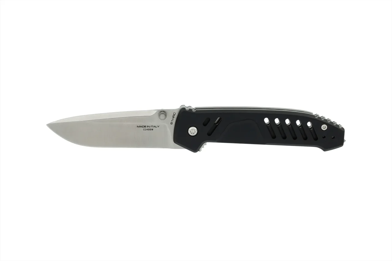 - MF1 EVO SP BLACK M390: with black handle and Böhler M390 steel (61 HRC) Spear Point blade with a superficial DLC (Diamond-Lile Carbon) coating
