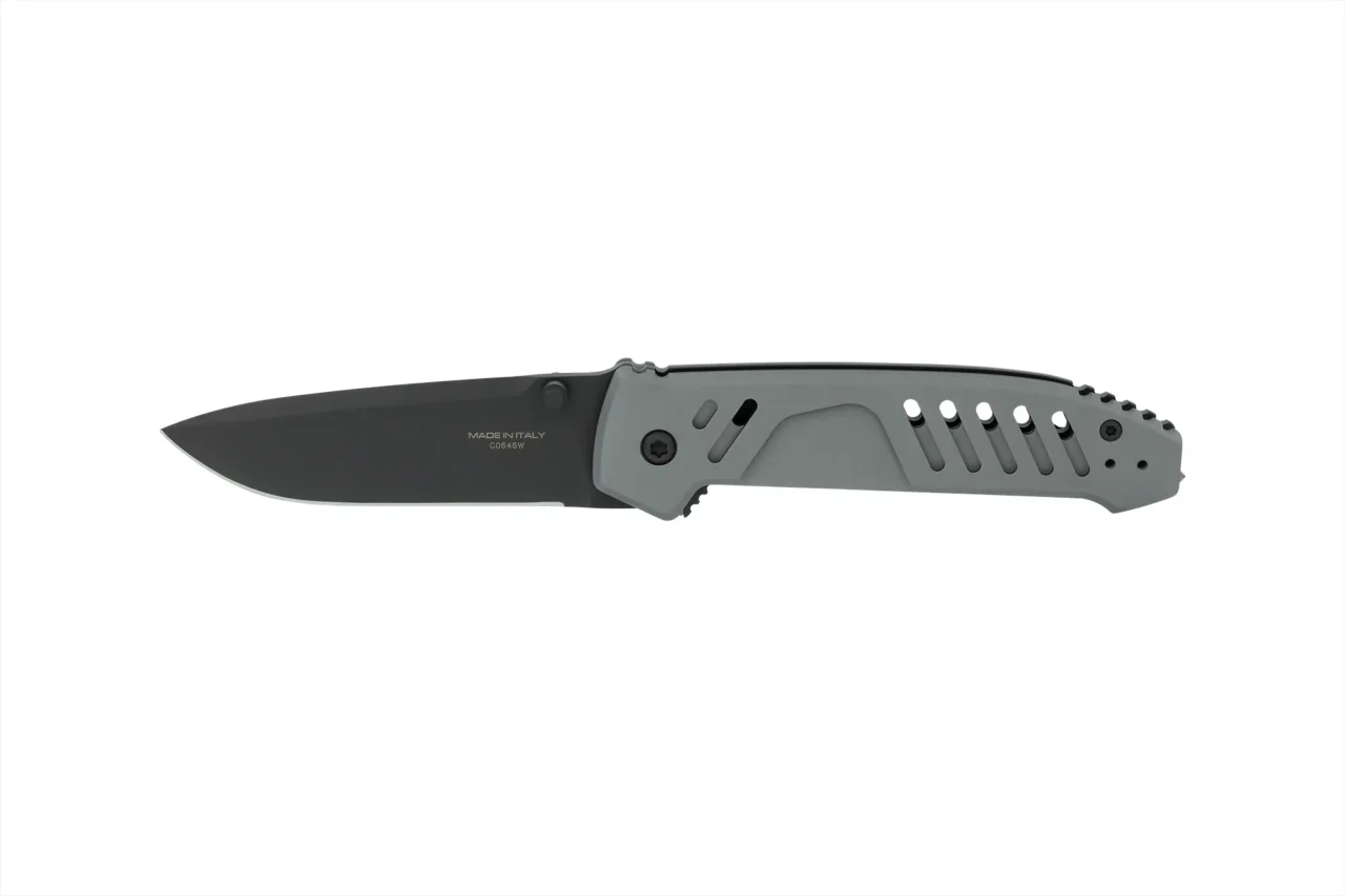 - MF1 EVO D TACTICAL GREY: with Tactical Grey handle and burnished Böhler N690 steel (58HRC) drop blade