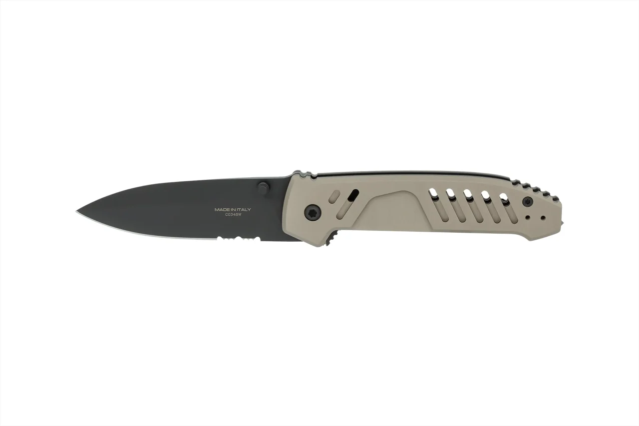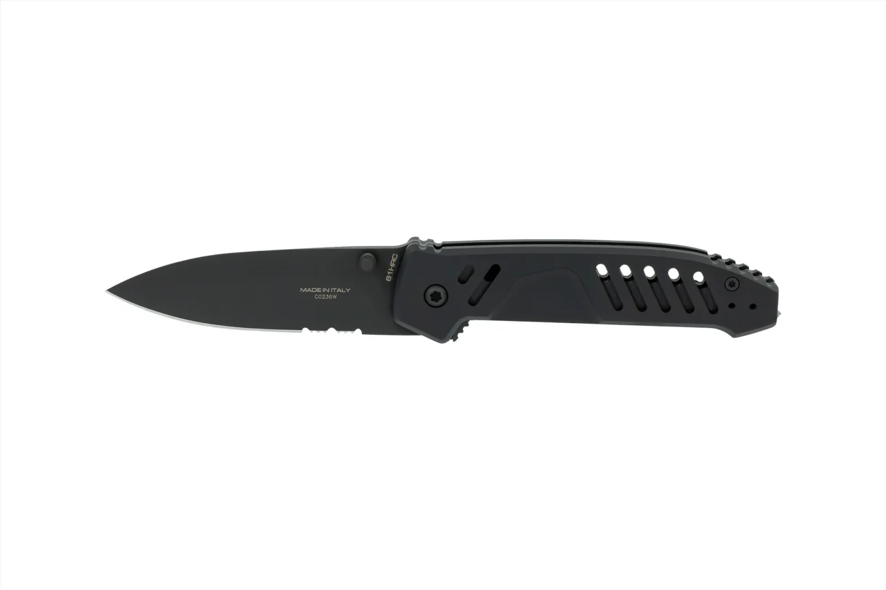 MF1 EVO D BLACK, MF1 EVO D TACTICAL GREY and MF1 EVO SP TACTICAL MUD are made of Böhler N690, hardened to 58 HRC for better balance between edge retention and strength; this type of steel is used for most of Extrema Ratio knives.