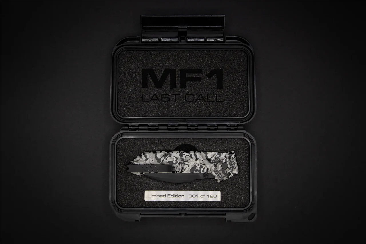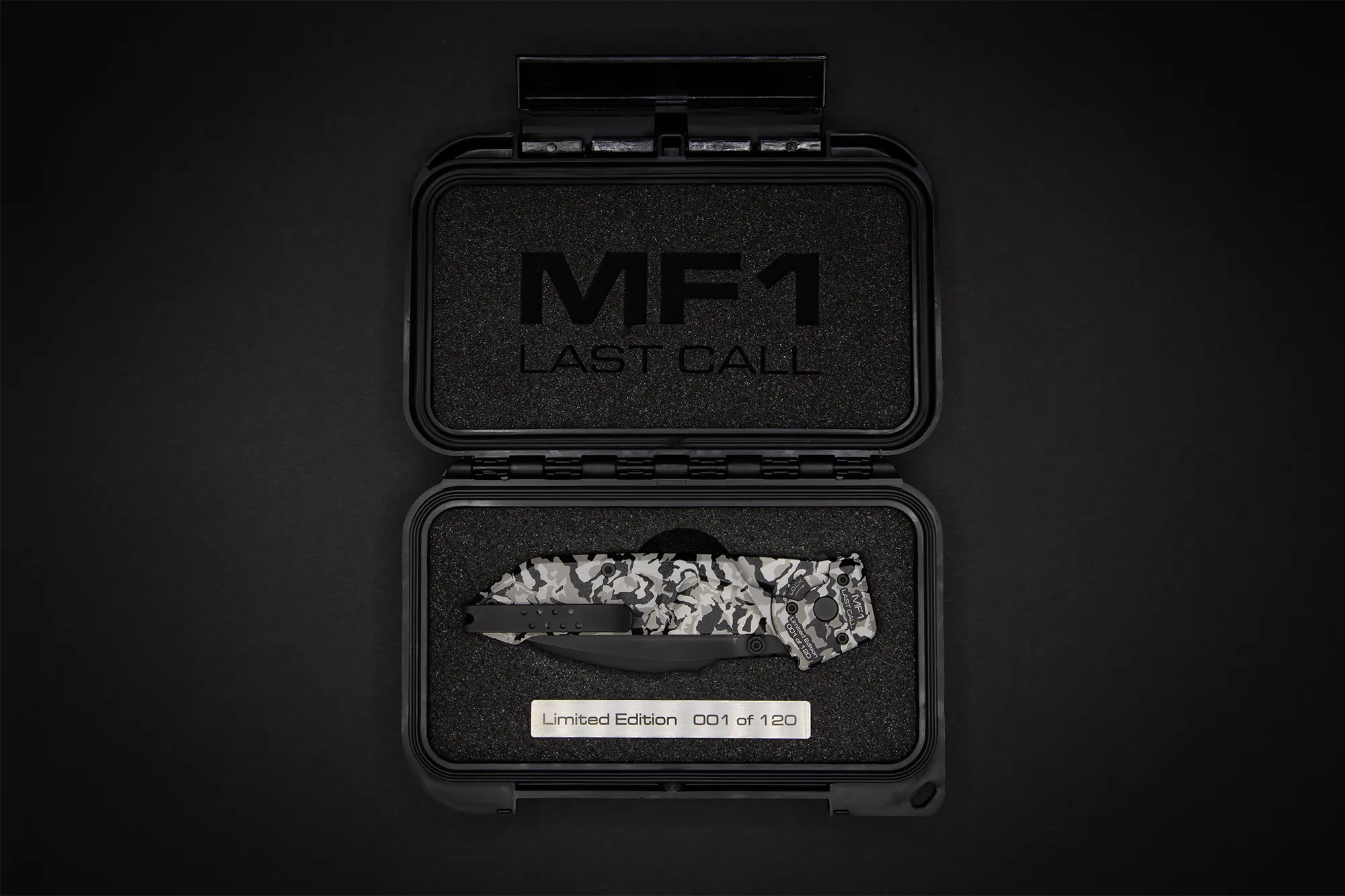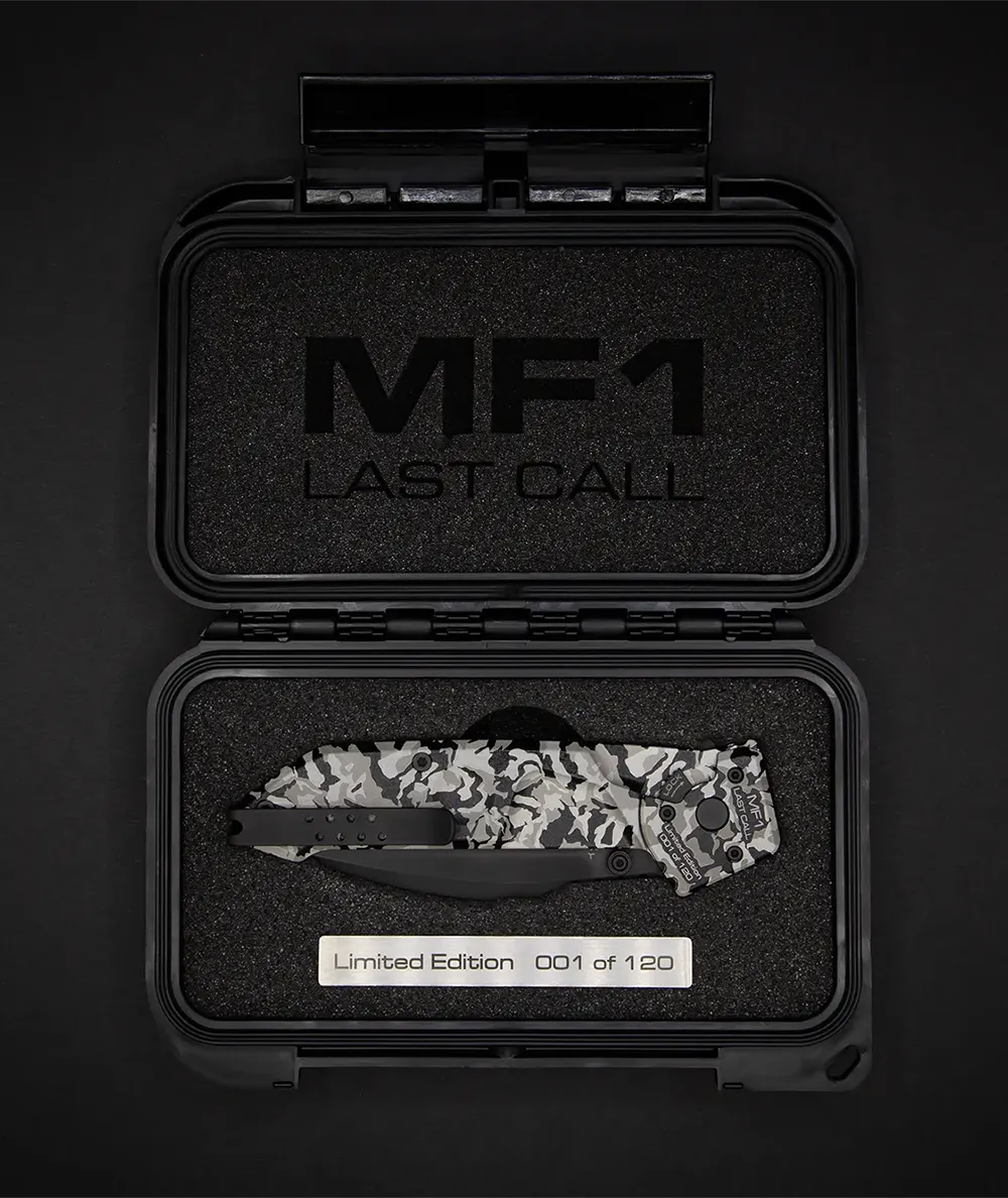 Featuring a burnished MIL-C-13924 finish, a glacial-inspired handle, and a reversible clip for a safe carry, MF1 LAST CALL is the collector's item you cannot miss.