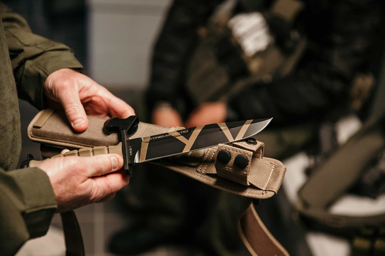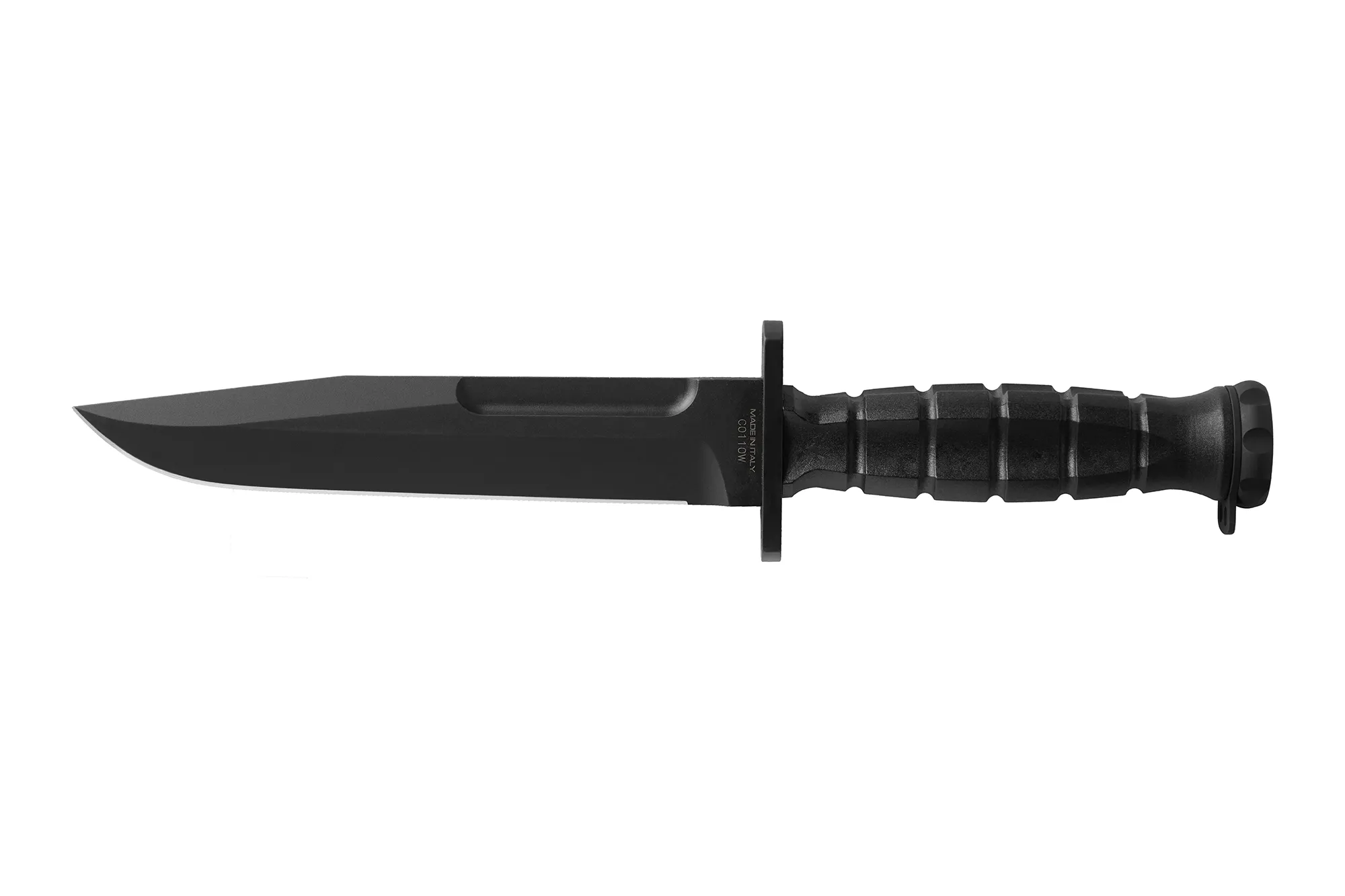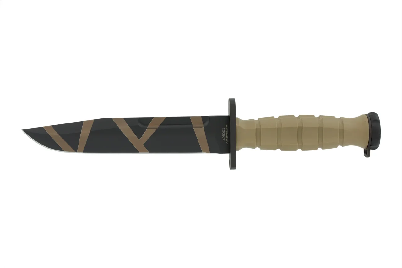 The most significant changes are aimed at fixing the known “weak spots” of the parent knife: these include toolless in-the-field disassembly ability, a straightened modified Bowie profile making for easier edge maintenance, and barrel-shaped grooves on the hilt which both help user properly orient the blade in the dark and improve user’s grip in twisting movements (“screwdriver” effect).