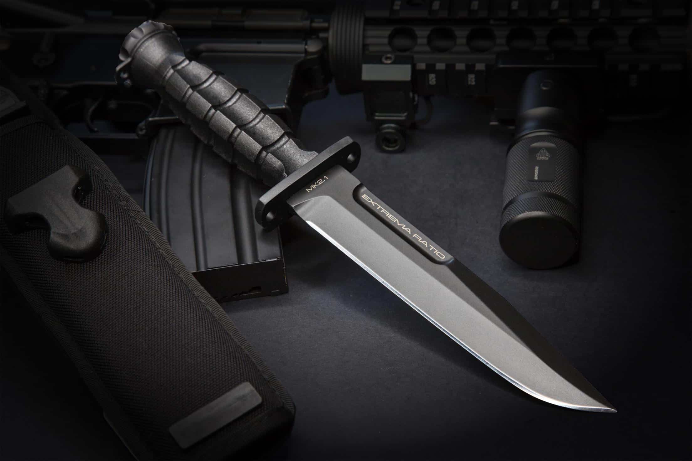 MF1 EVO D BLACK, MF1 EVO D TACTICAL GREY and MF1 EVO SP TACTICAL MUD are made of Böhler N690, hardened to 58 HRC for better balance between edge retention and strength; this type of steel is used for most of Extrema Ratio knives.