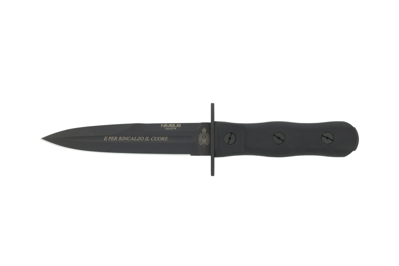 NIMBUS has been ordered and adopted by the renowned 183rd Regiment Nembo (Airborne) by rewieving the 39-09 well known model. This knife celebrates the battle of Case Grizzano which took place on 19th April 1945 between the paratroopers of Nembo and the German 1^ Division Fallschirmjäger “Green Devils”, a 12 hours extremely cruel and bloody hand-to-hand blade skirmish.