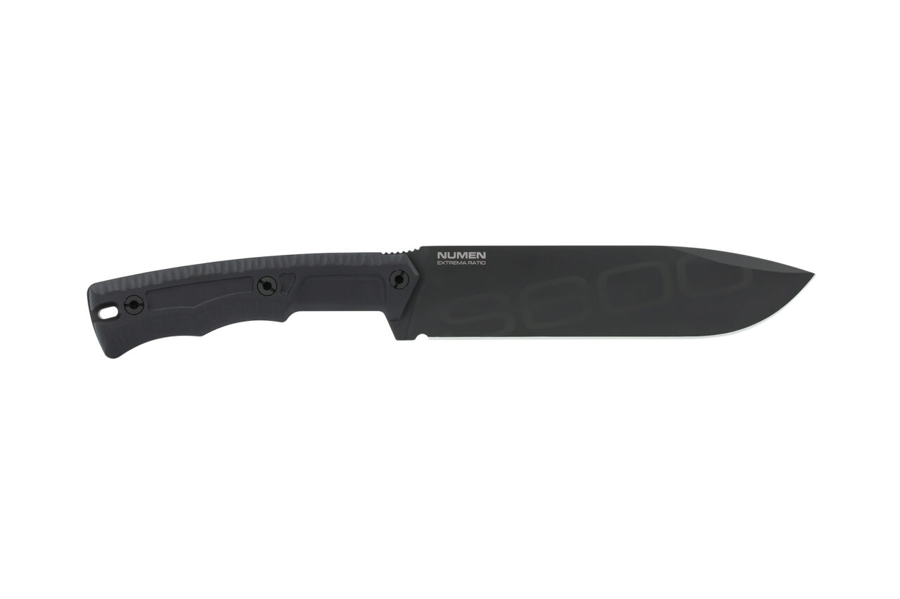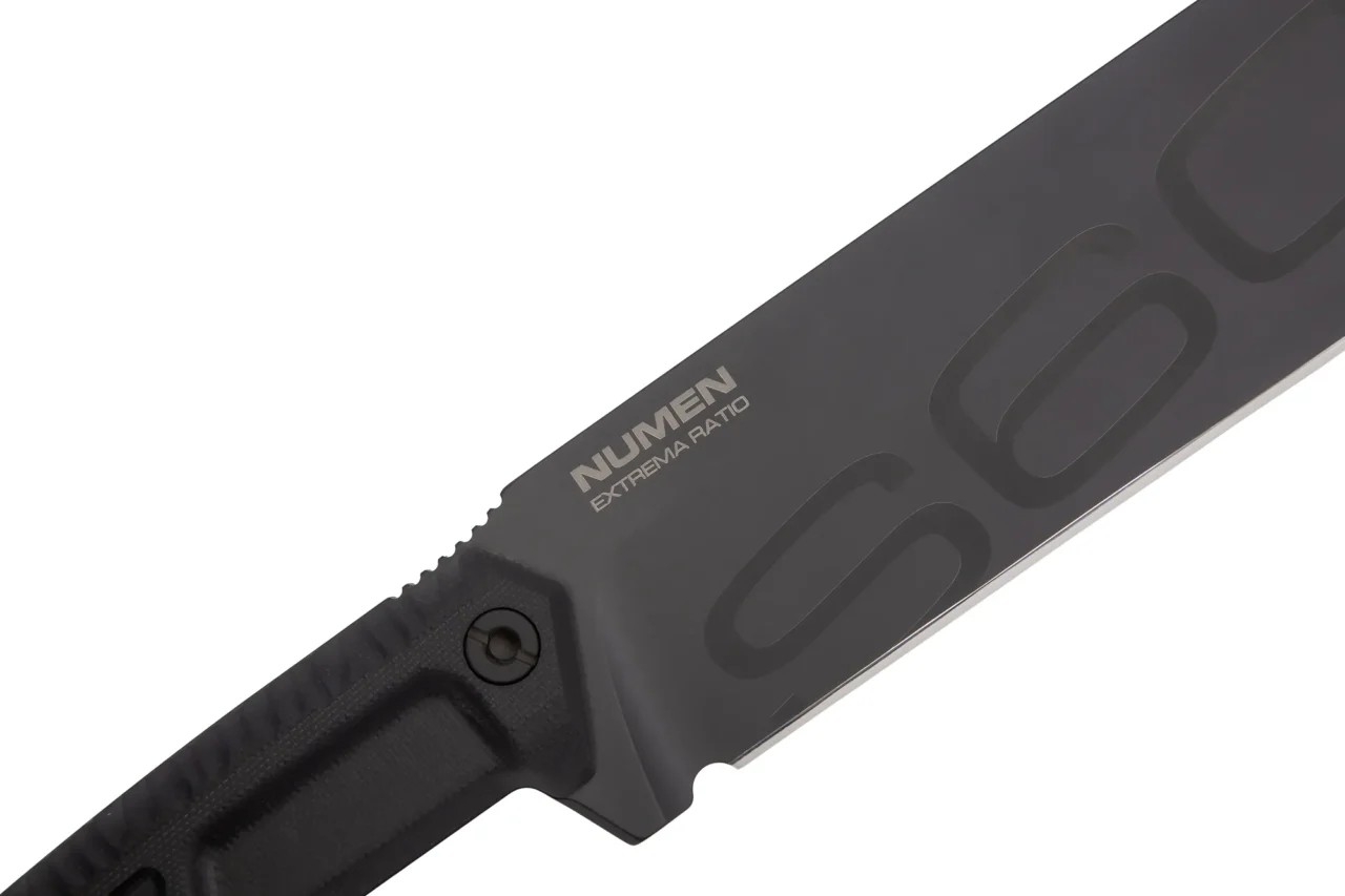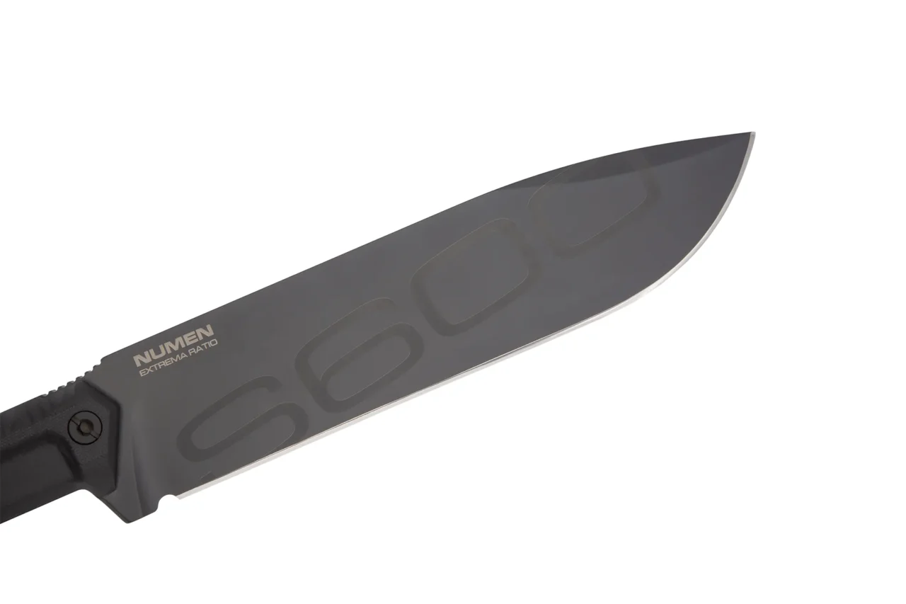 - Numen S600 Black – Ideal for wear resistance and superior performance. This version offers unparalleled toughness. It is manufactured with Böhler S600 steel, an industrial material used in the production of metalworking tools, cryogenically treated to an incredible hardness of 64 HRC. The coating applied is the new EXP DARK with a Teflon base, as introduced by Extrema Ratio.