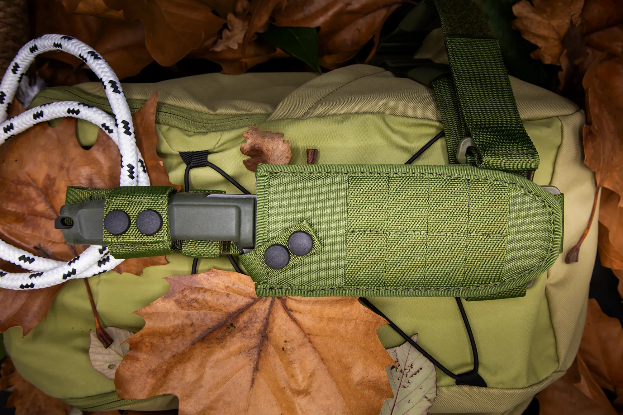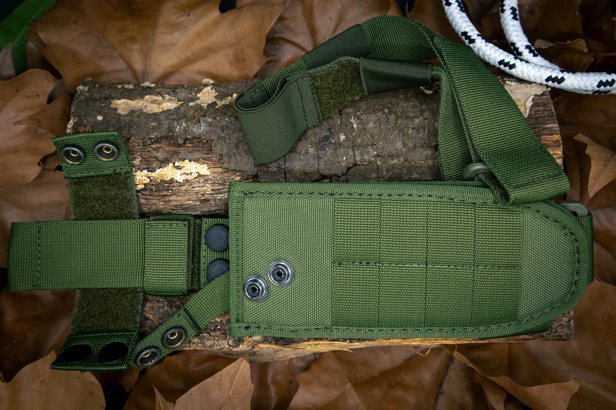 - Including a green thigh sheath with M.O.L.L.E. system, ready to be adapted to your equipment.