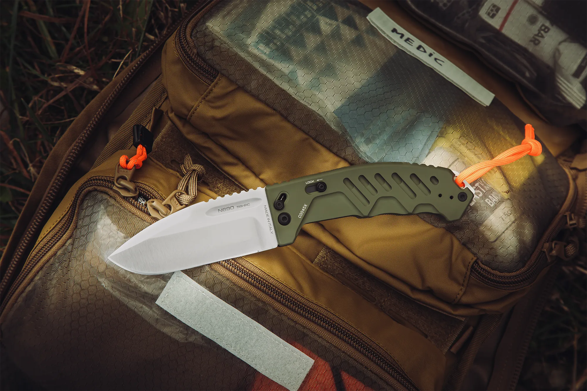 The Outdoor configuration introduces dedicated finishes and functional solutions for field use, transforming a heavy‑duty folder into a tool fully aligned with operational bushcraft, advanced camping, and professional outdoor applications.