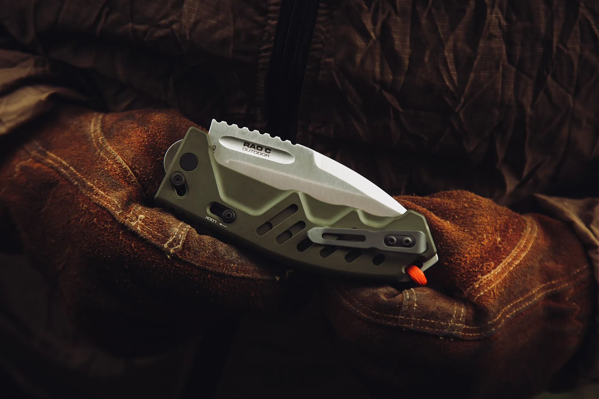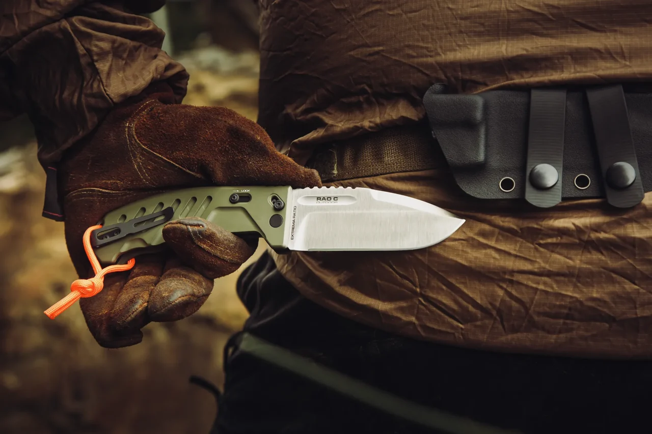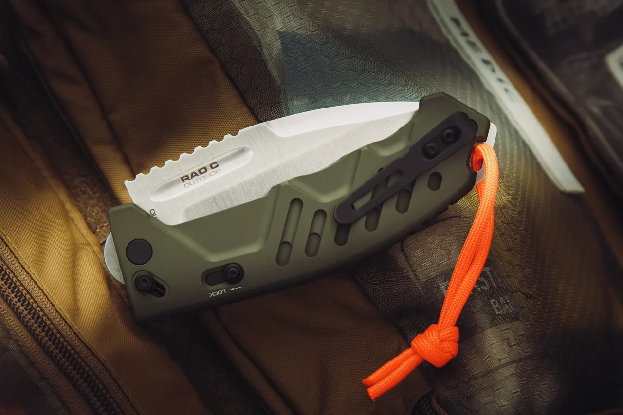RAO C Outdoor is a compact, robust folding knife derived from the iconic RAO II, reinterpreted specifically for outdoor use. It retains the core design philosophy of the RAO C model: maximum structural strength in a more portable format, combined with excellent handling and control. It is intended for users who require an outdoor folding knife capable of performing reliably under load.