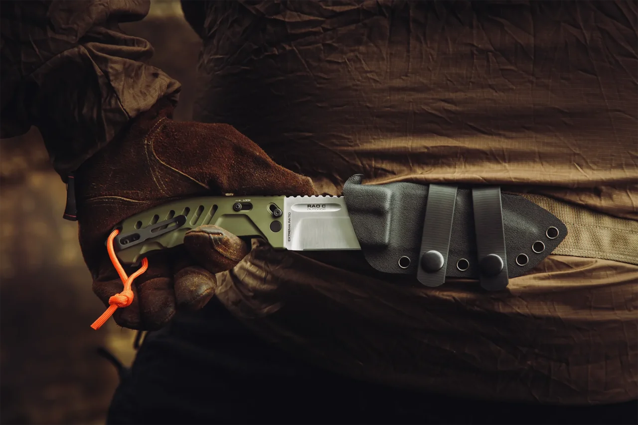 The Extrema Ratio Outdoor series is built around a simple principle: when you’re out in the field, excess weight is a liability. It is a series specifically engineered for real outdoor use, featuring dedicated finishes and solutions: green handles for environmental integration, Stone Washed or Satin finished blades for easy maintenance, high‑visibility paracord, essential and rugged sheaths.