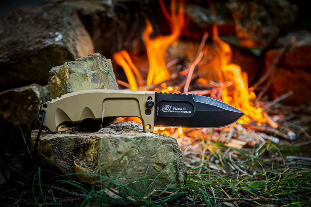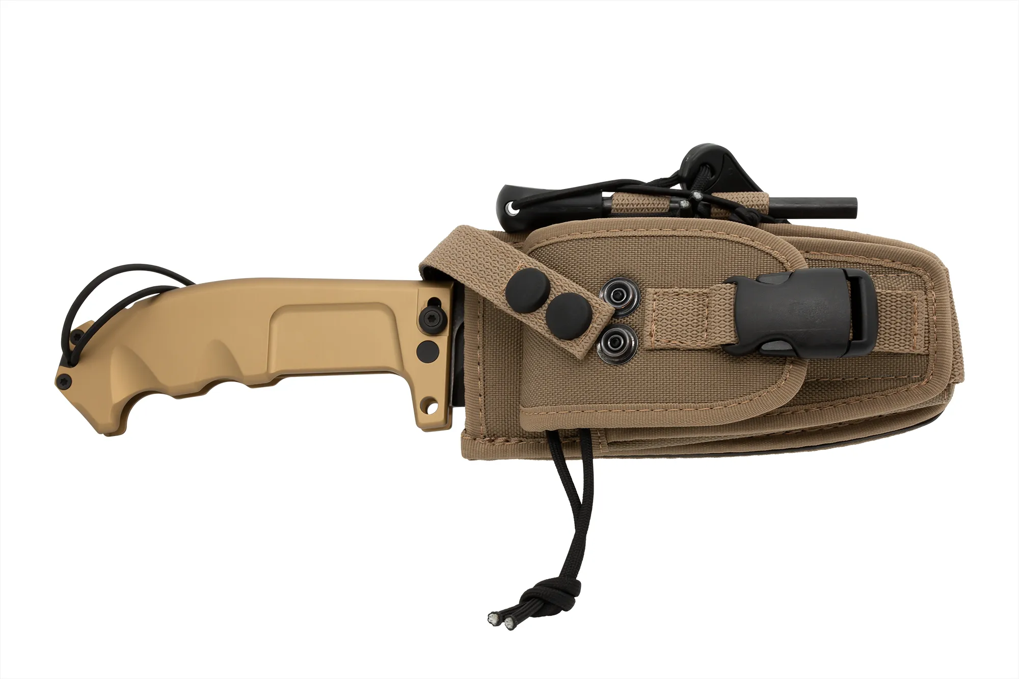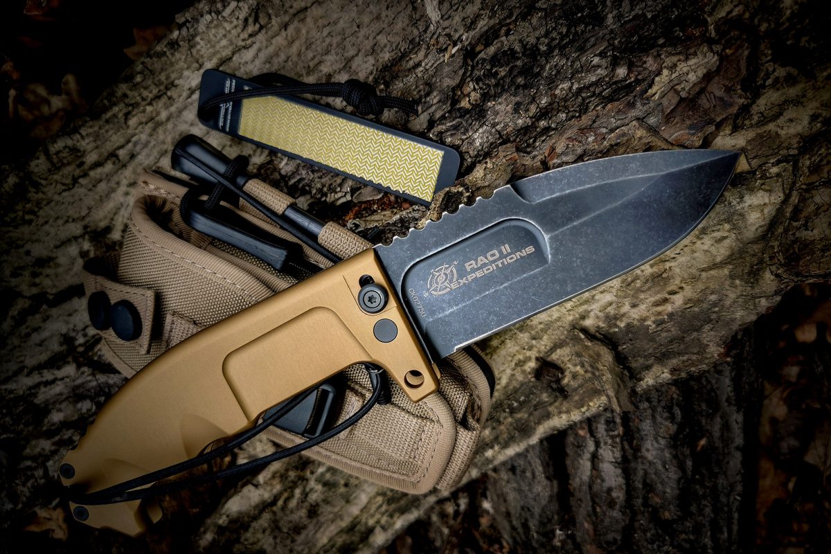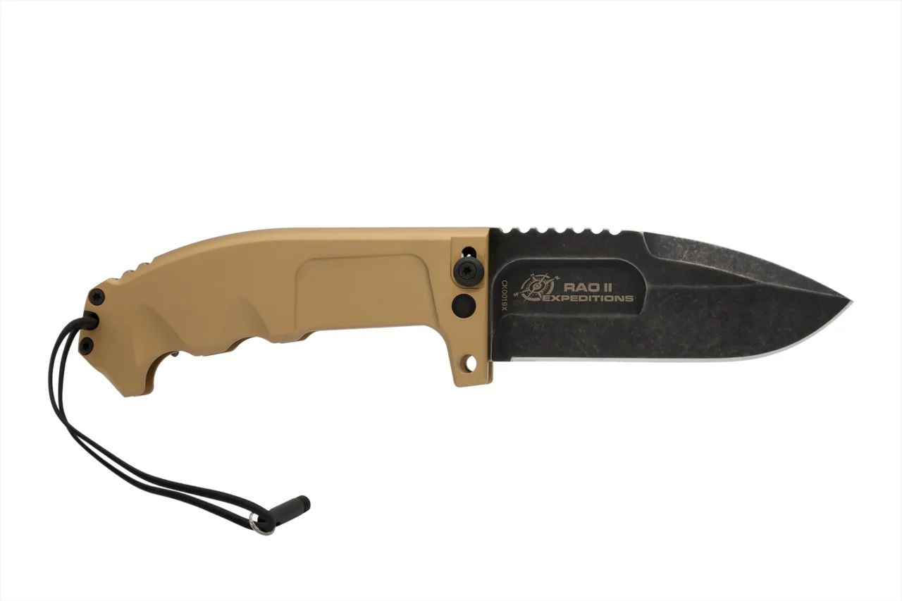 The RAO II Expeditions, unlike its original model RAO II, is equipped with desert-coloured sheaths and, among its various tools, with a firesteel for lighting fires. RAO II Expeditions is no exception and comes with a desert Cordura sheath which is an essential component of the carry system.