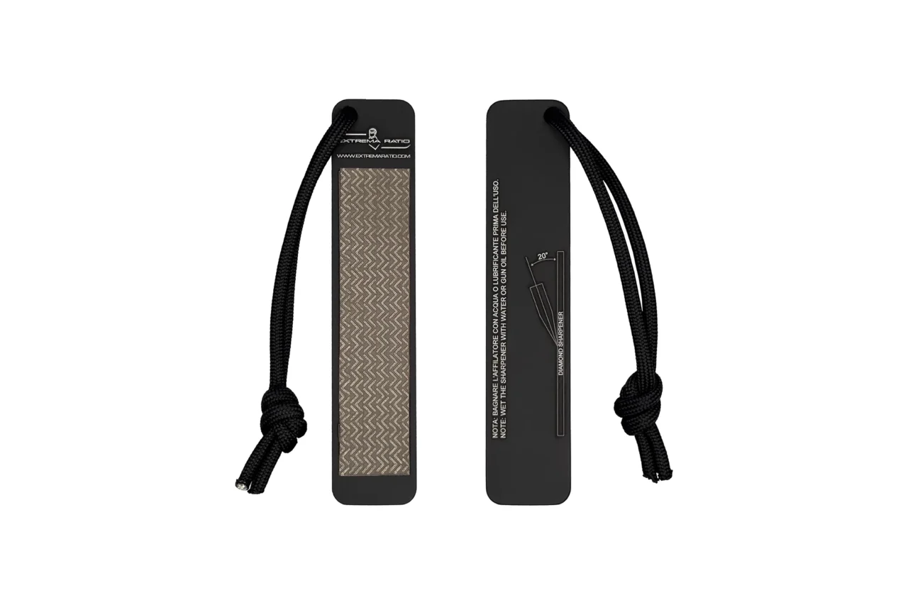 The extra safety lock effectively turns it into a fixed blade knife enabling great chopping performance with no risk of injury. The sheath can hold the knife in open position for frequent use, or in closed position inside the front pocket. It comes with a diamond-plate sharpener to always keep a perfect edge