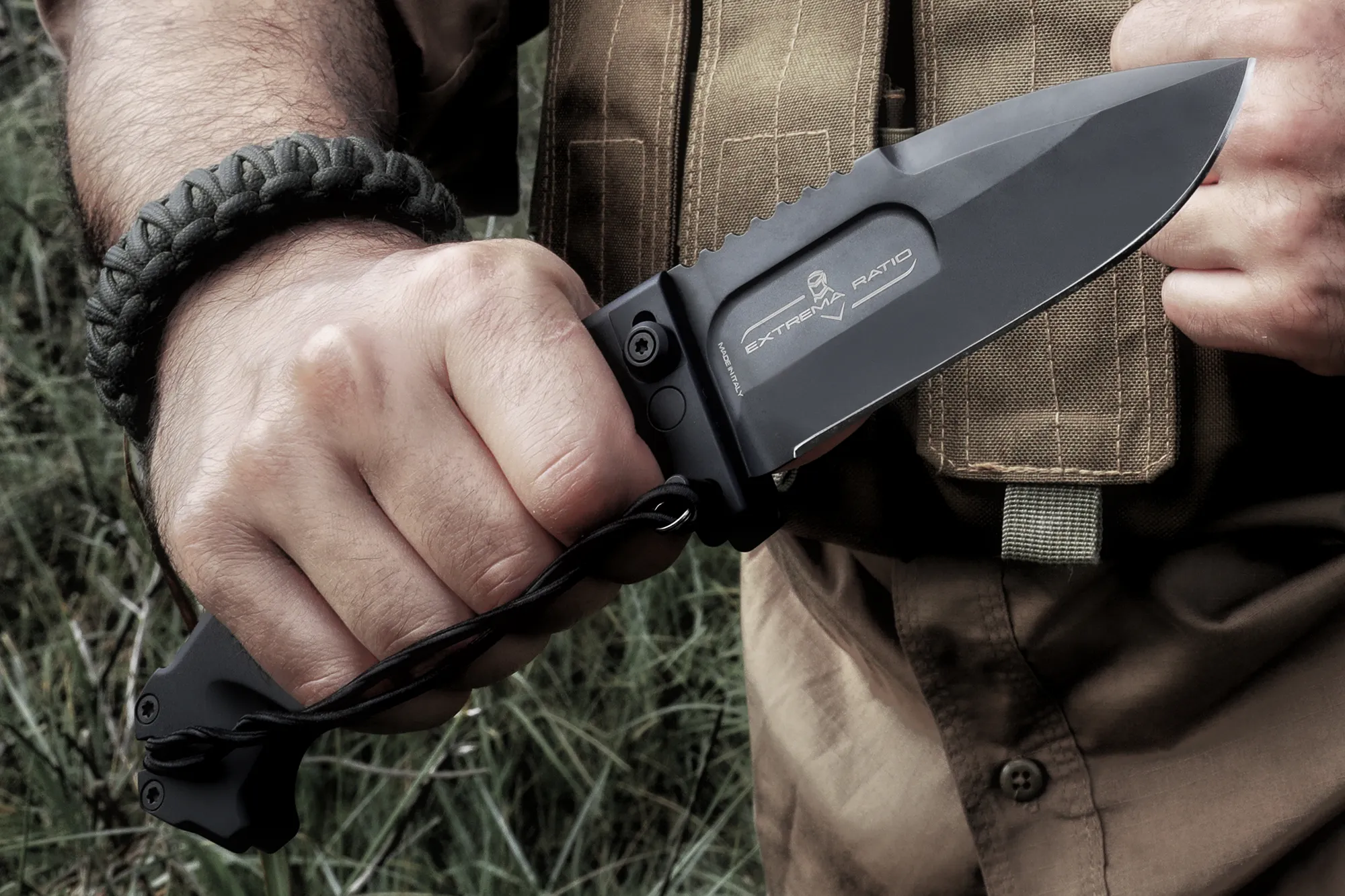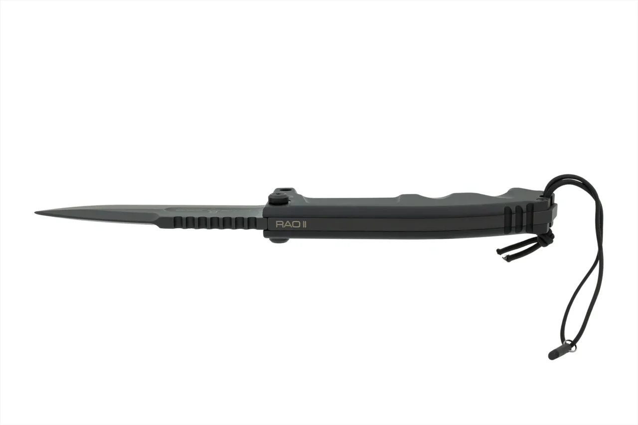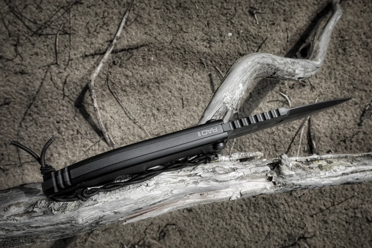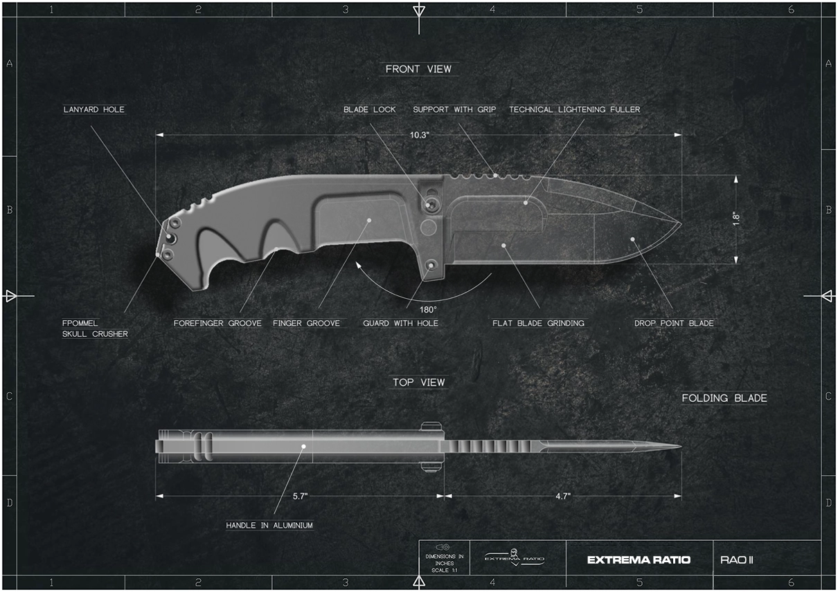 RAO II is the new version of the celebrated Extrema Ratio RAO knife; it comes with a new drop-point blade and an improved handle, rounded at the upper corners for a more ergonomic grip.