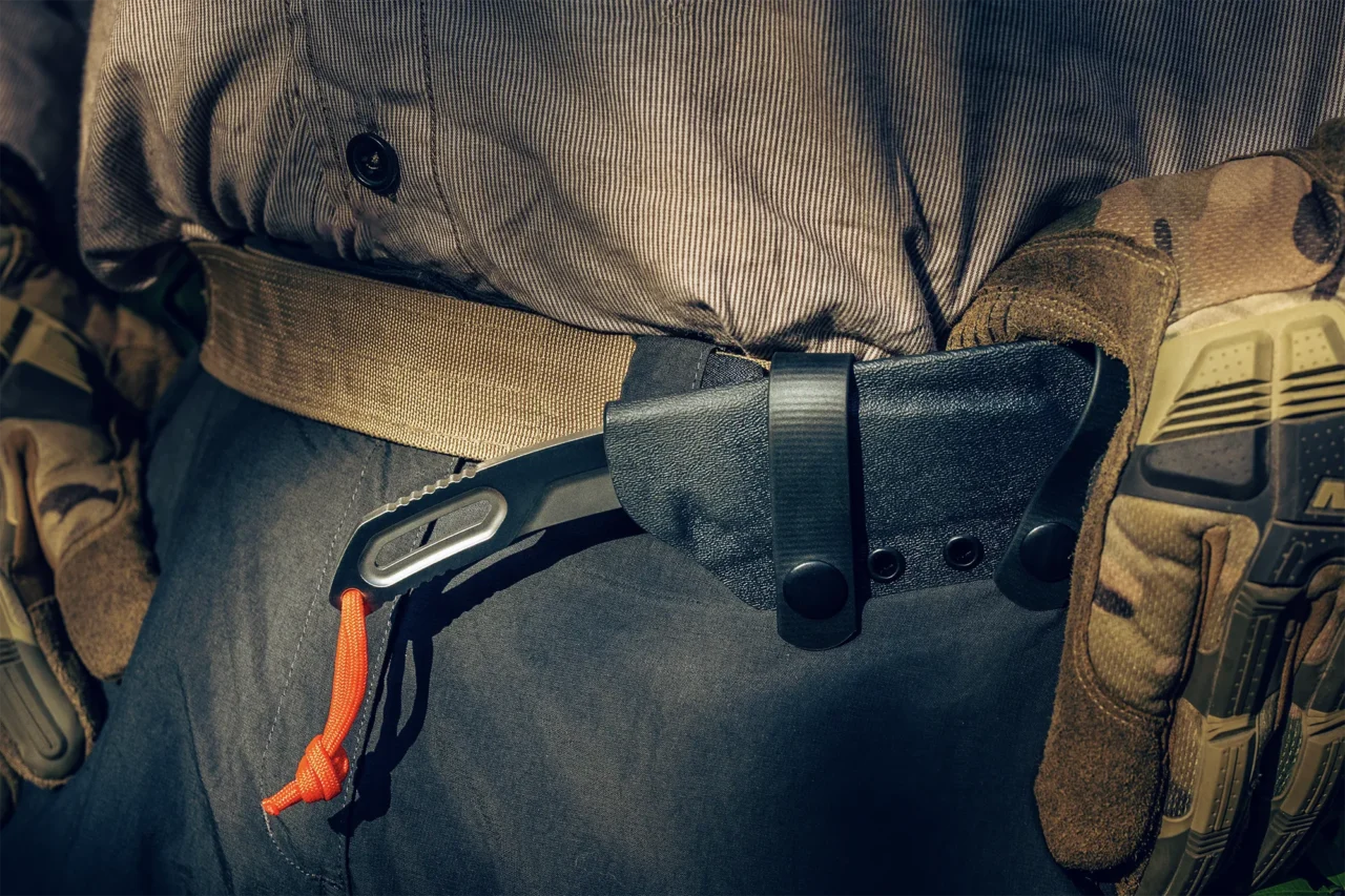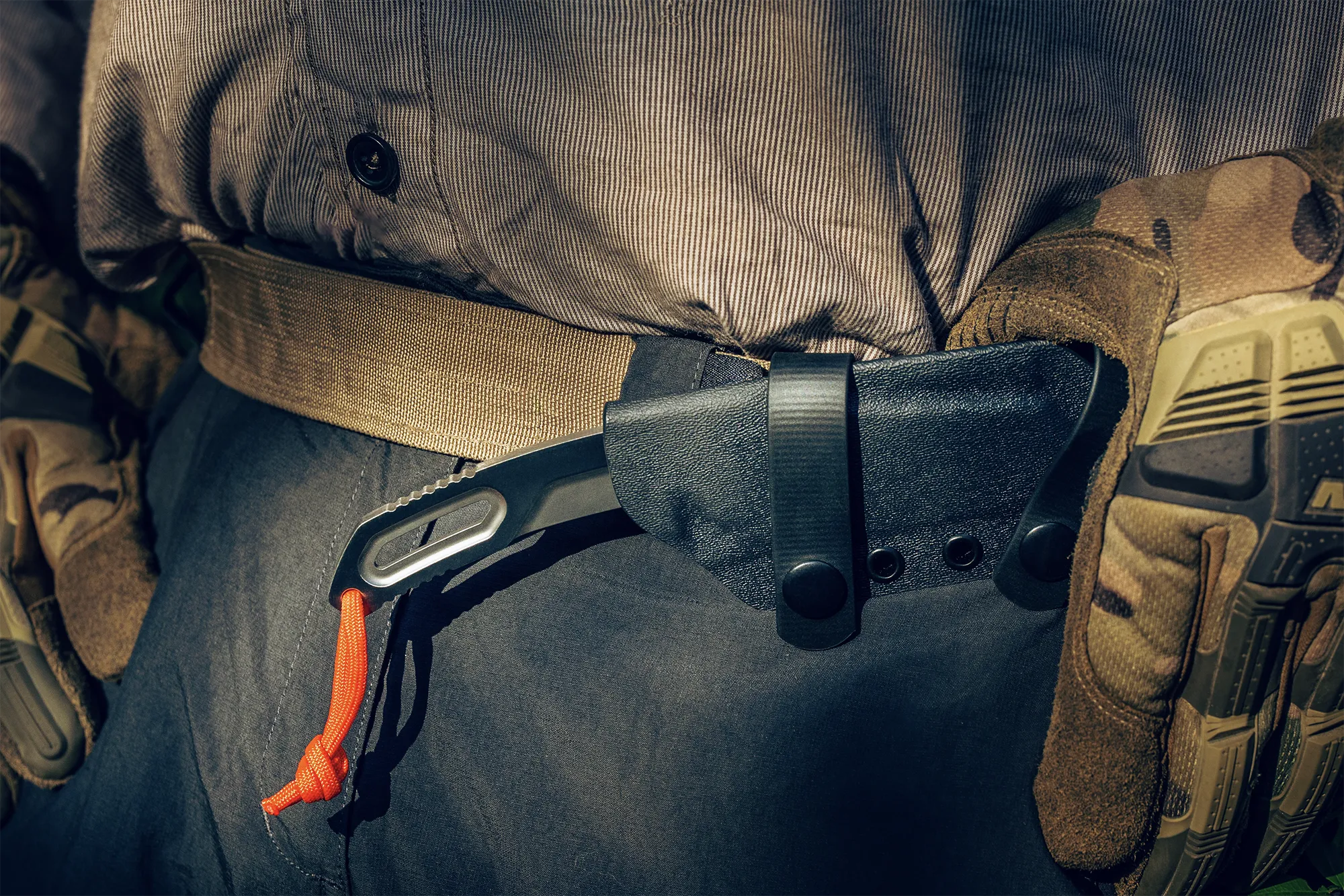 - Double loop, ambidextrous Kydex sheath with buttons for belt attachment