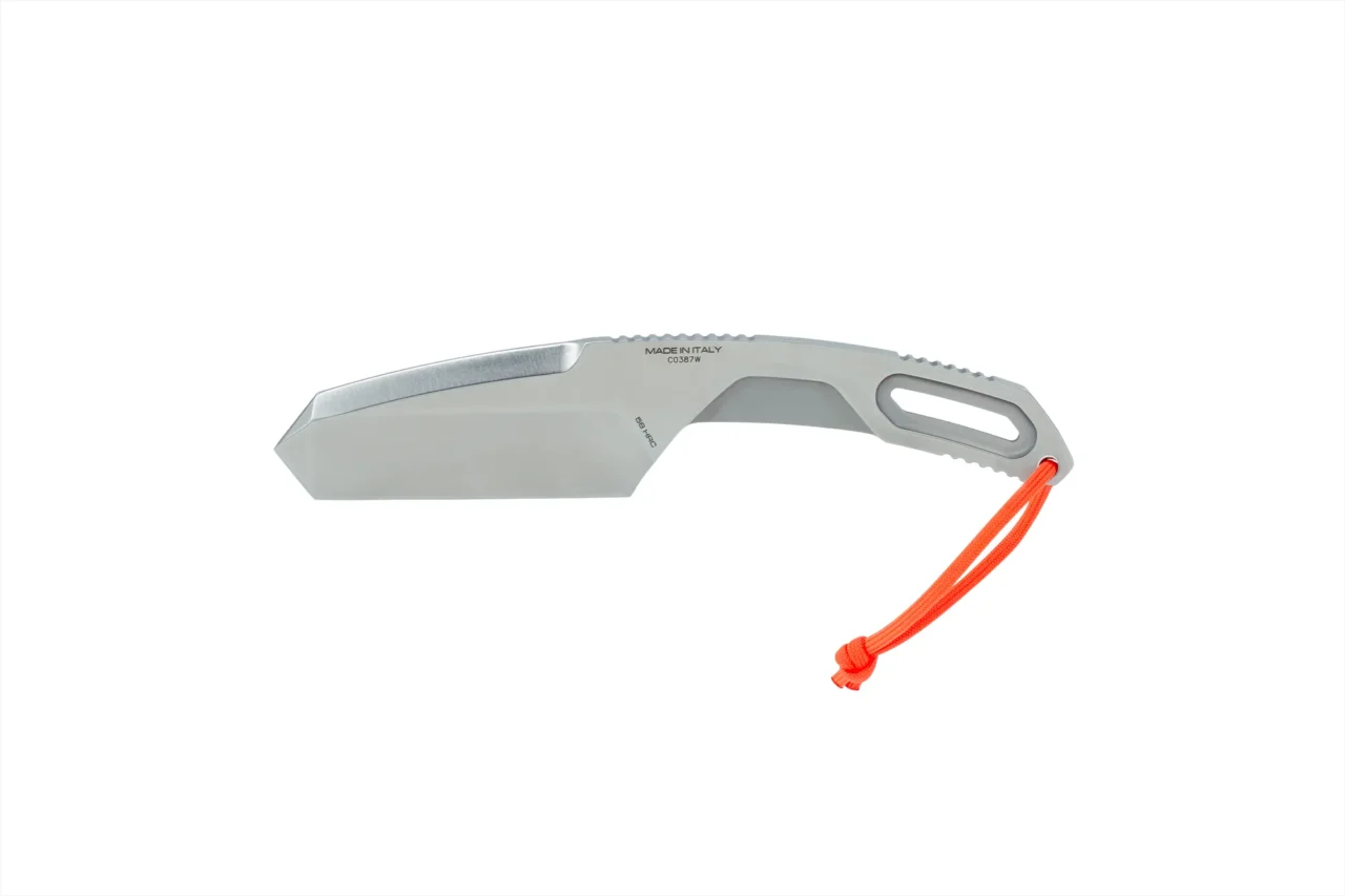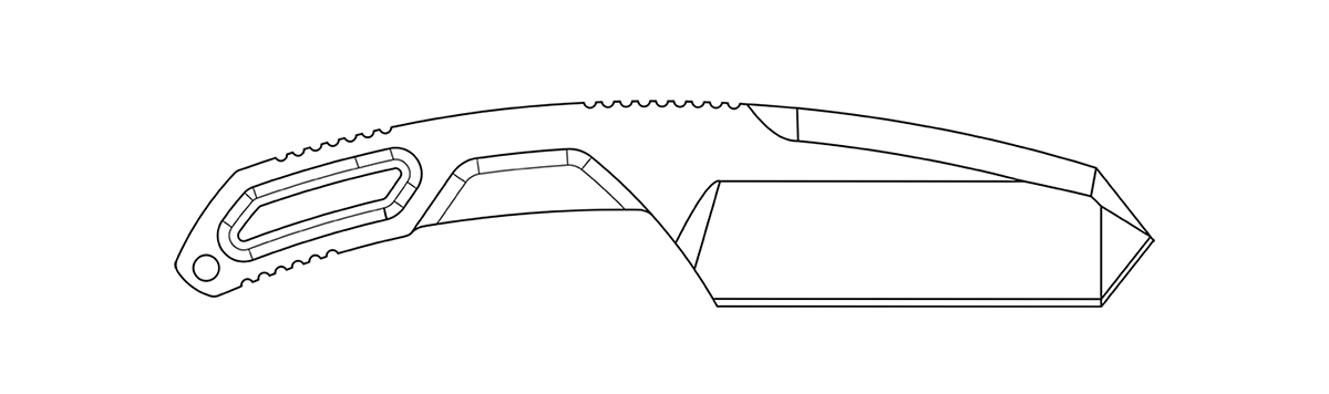 5 mm thick fixed blade, customizable grip, technical sheath.