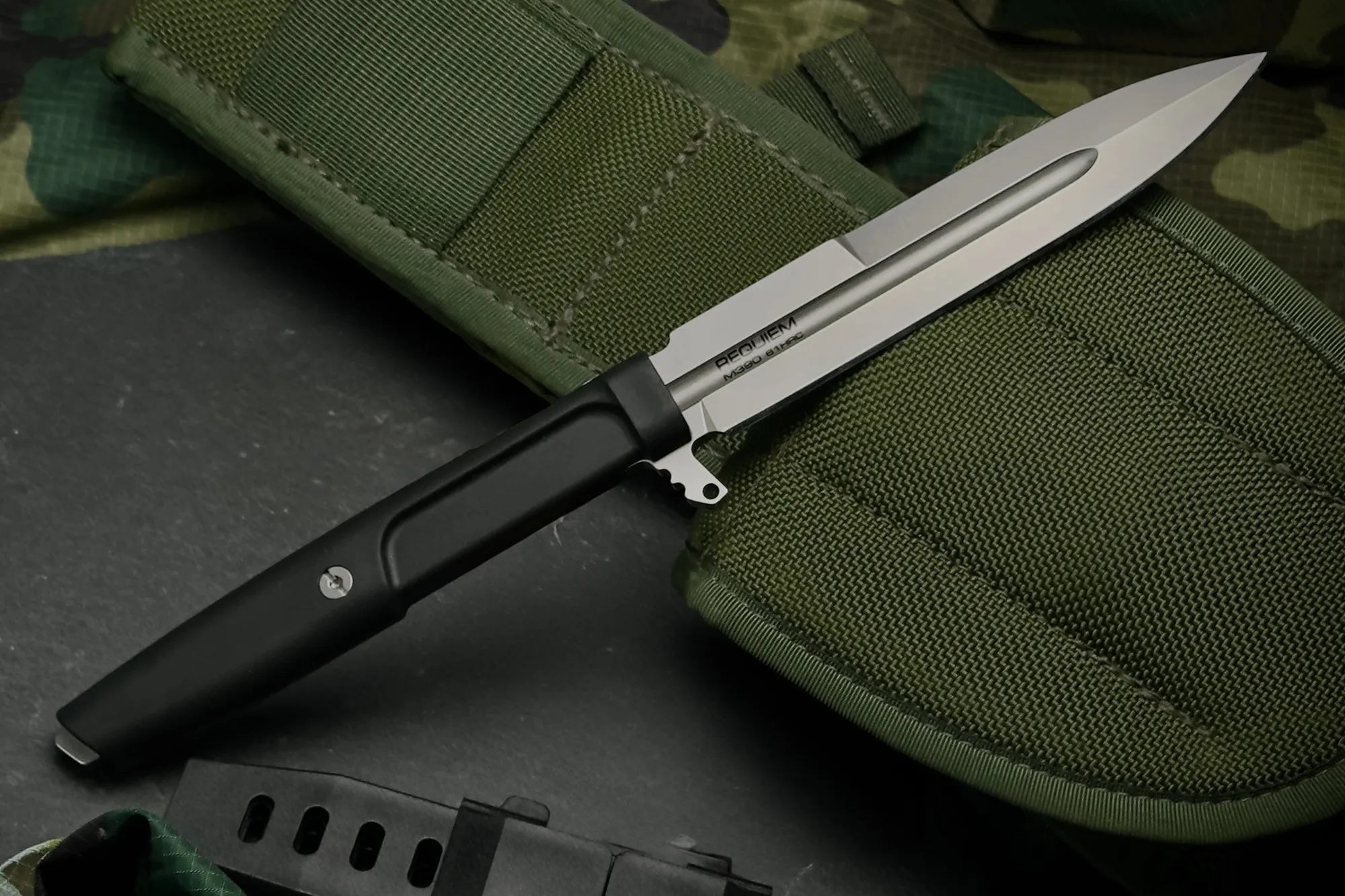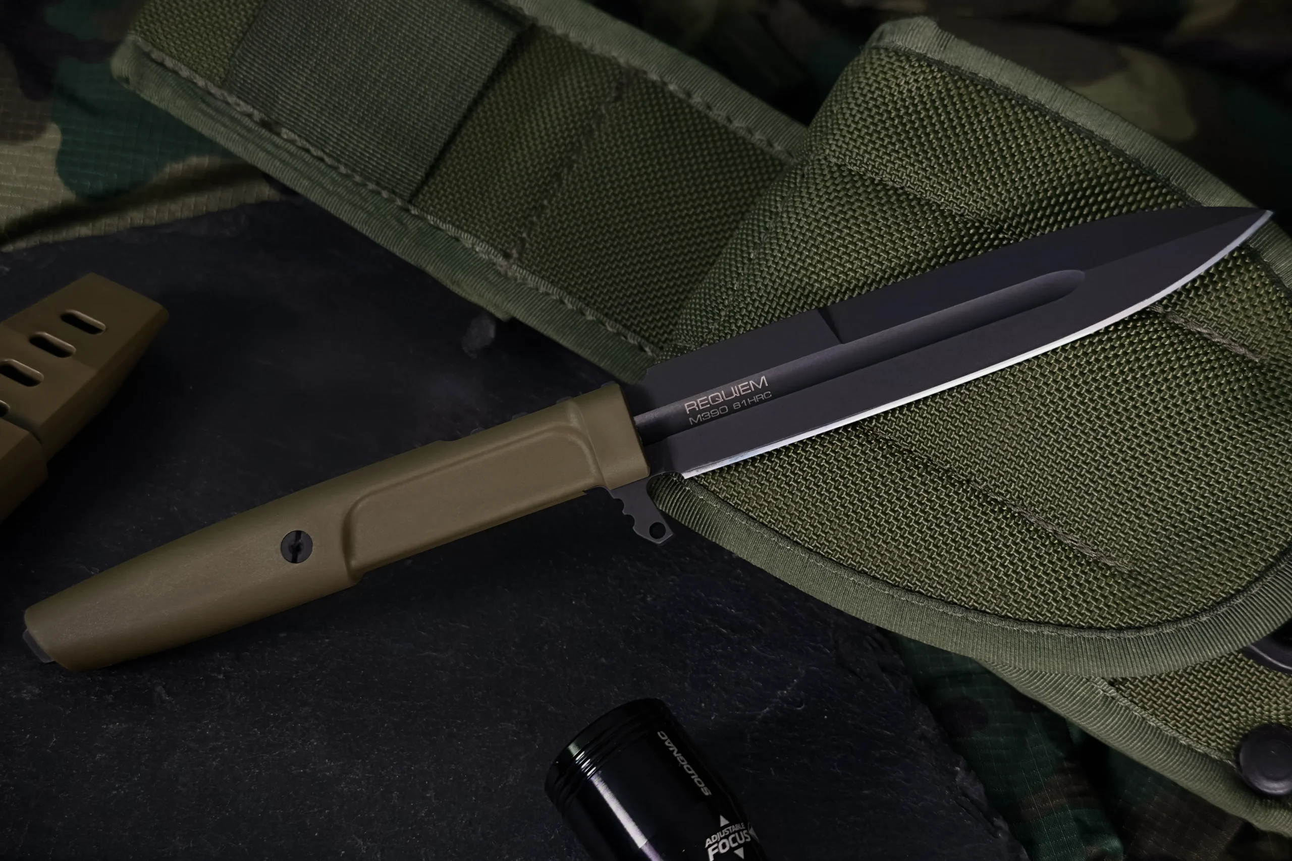 - REQUIEM M390 HCS BLACK: HCS handle and sheath, burnished blade.