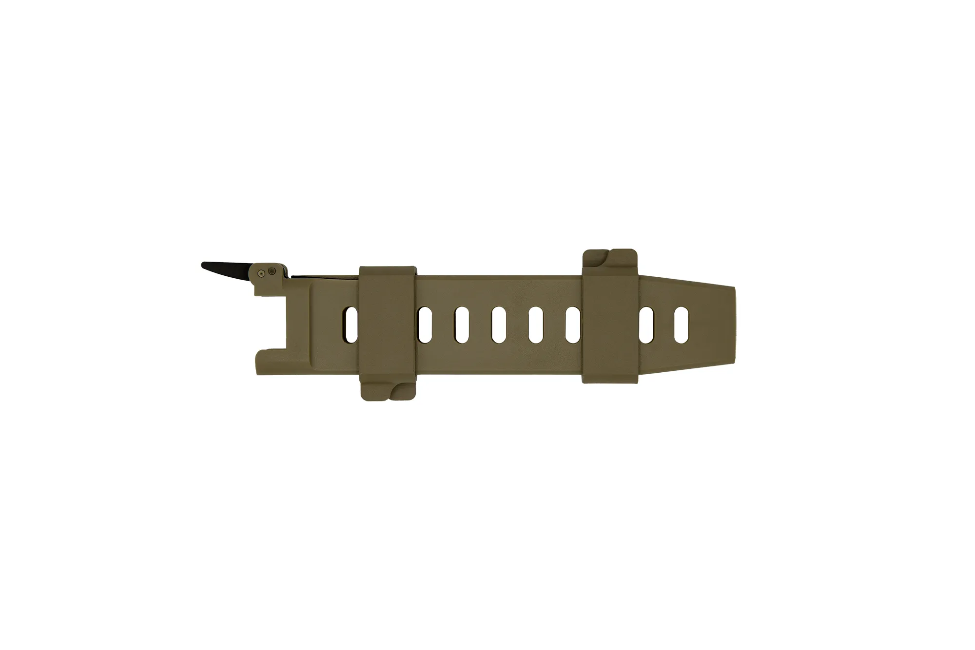 Requiem M390 is equipped with an ASPIS rigid sheath, which is MOLLE compatible. Thanks to the two adjustable loops you can fix it safely and to your liking. The tapered design makes it easy to sheathe the blade, while the trigger lock allows a quick and instinctive draw with a simple press.