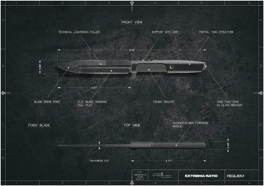 he Forprene handle features the classic Extrema Ratio ergonomic grooves, ensuring a firm grip even in extreme operating conditions.