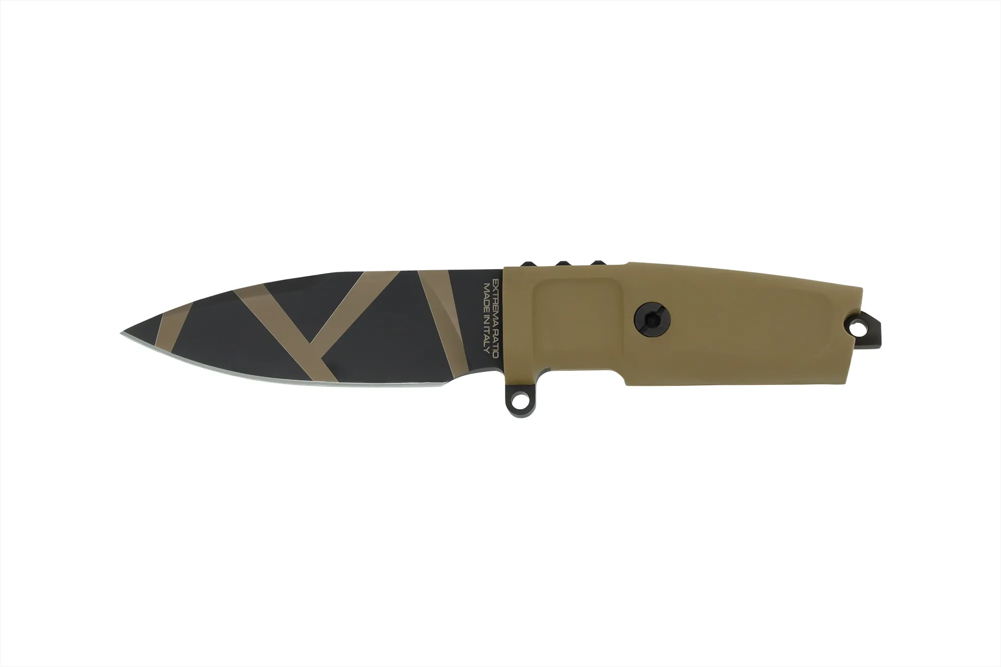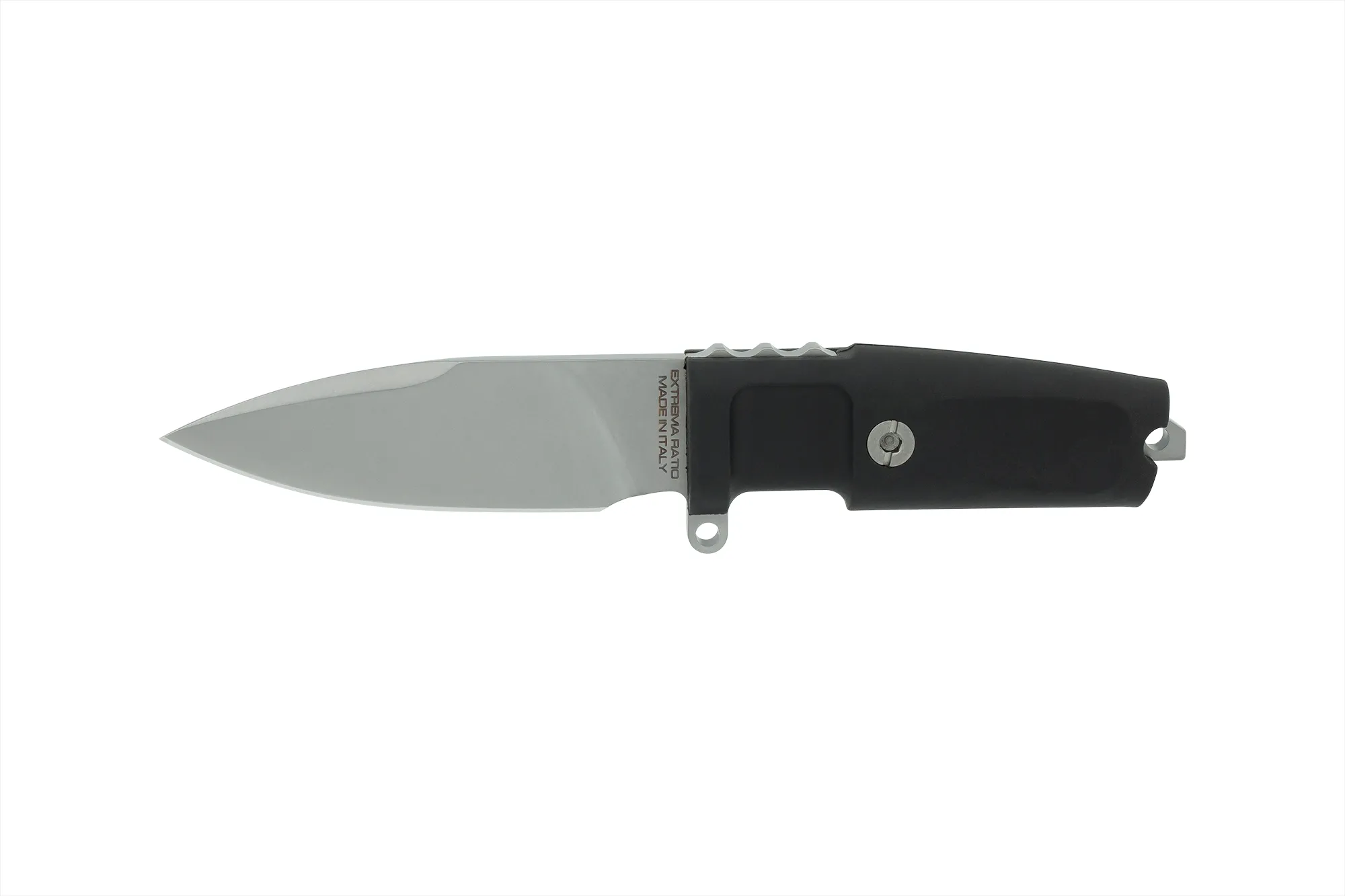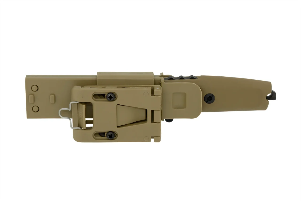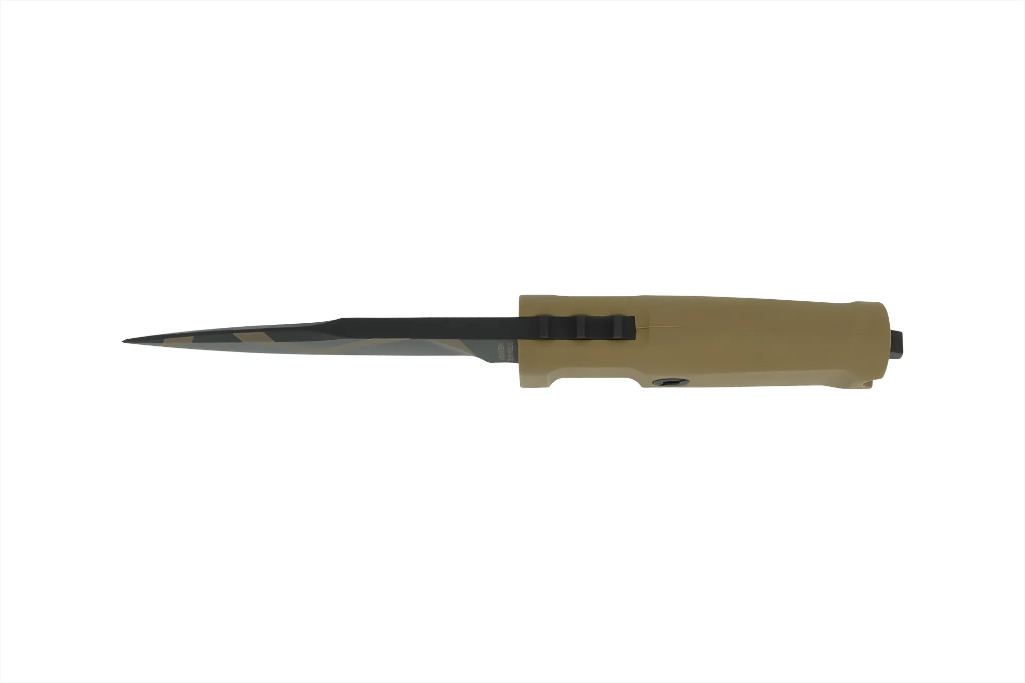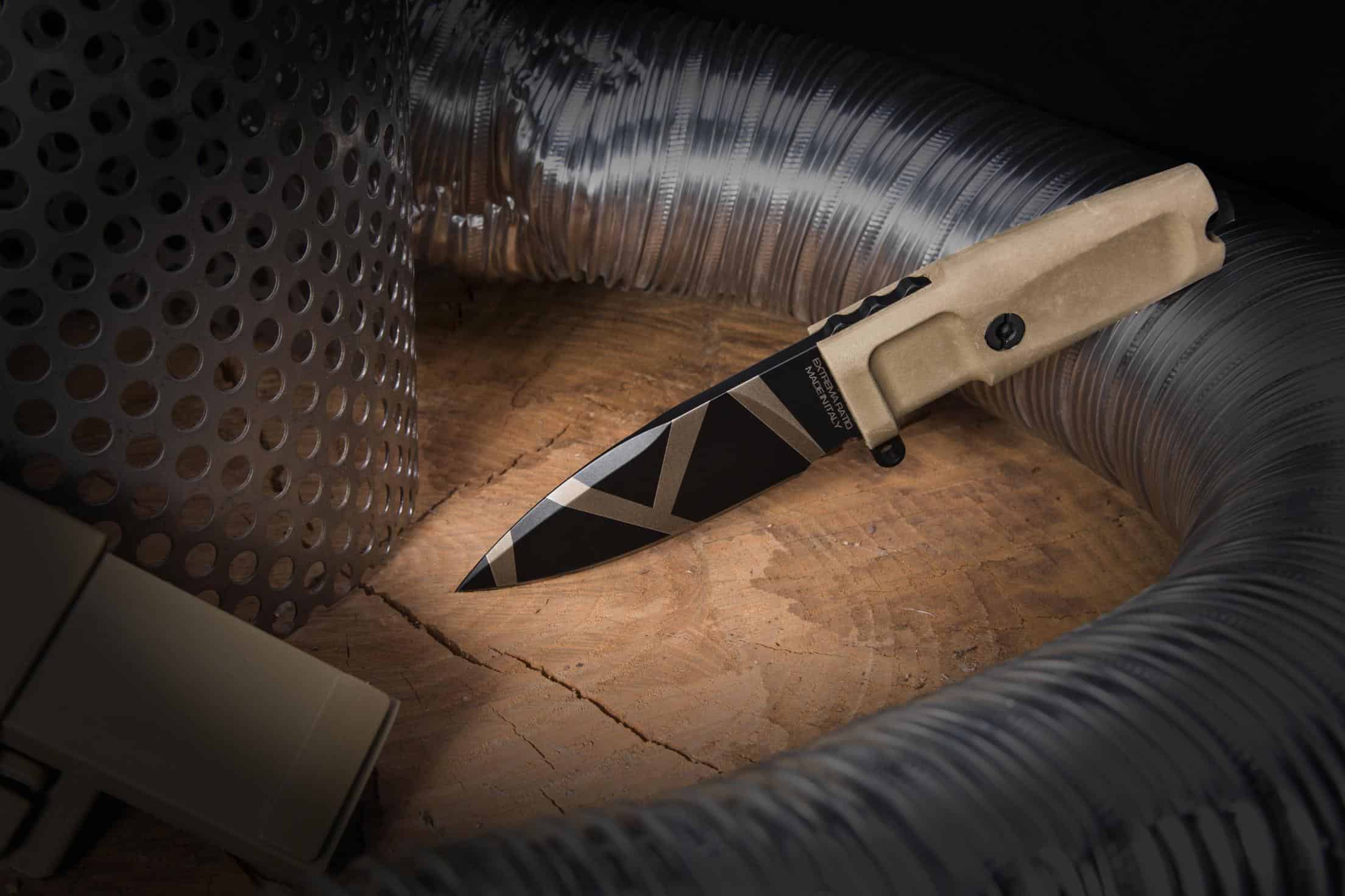 The included hard sheath can be worn vertically, horizontally or obliquely (at a 45° angle). Unlike the older model it supersedes, the SHRAPNEL OG hilt design does not include a guard. The original version of the SHRAPNEL OG comes with a 3.9in compact handle, the Full Handle version comes with a more comfortable 5in handle.
