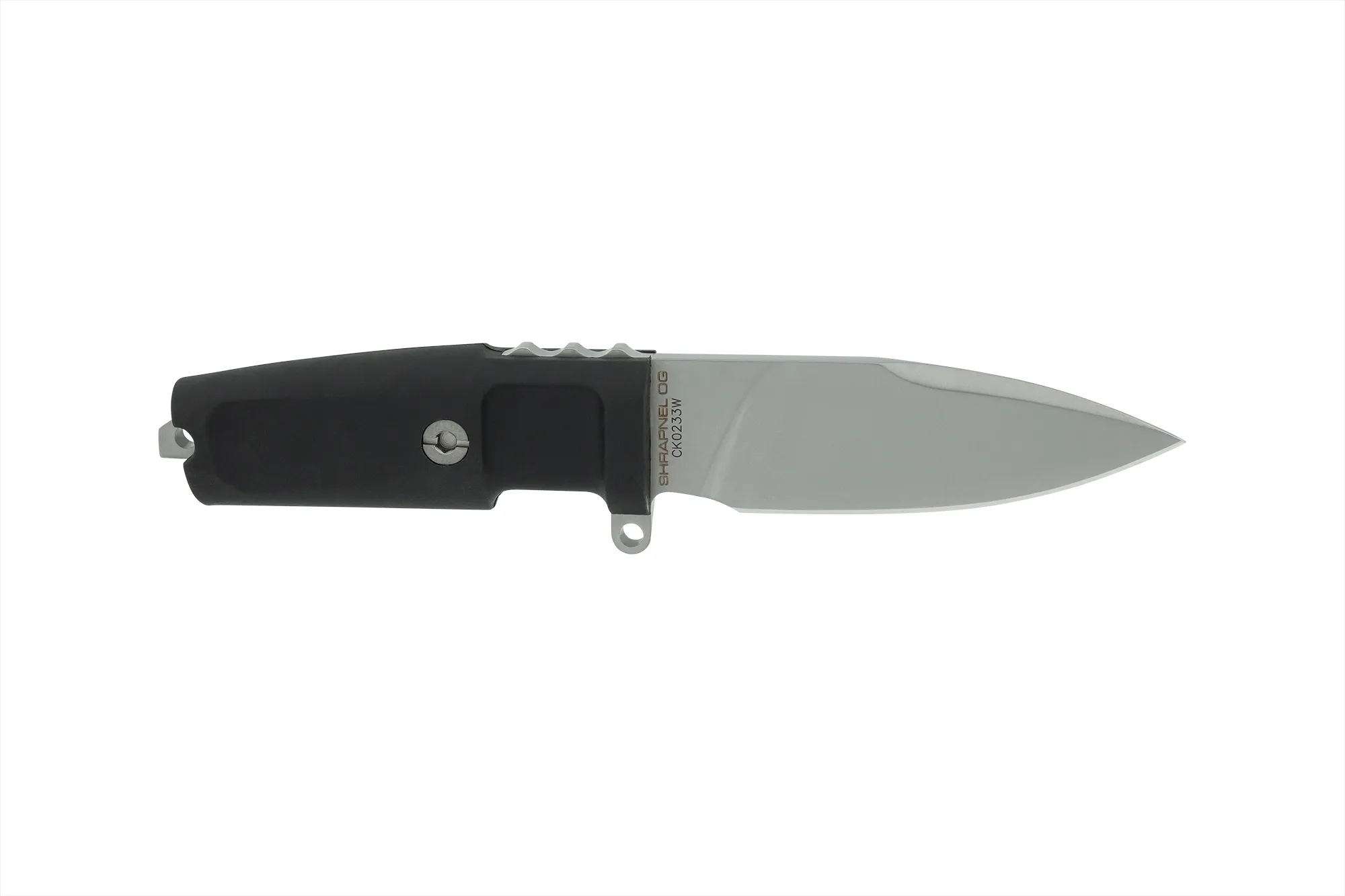 SHRAPNEL OG is a truly versatile “back up” knife with marked combat qualities. Its leaf-shaped blade is flat ground at a characteristically low angle to a wide, extraordinarily sharp edge.