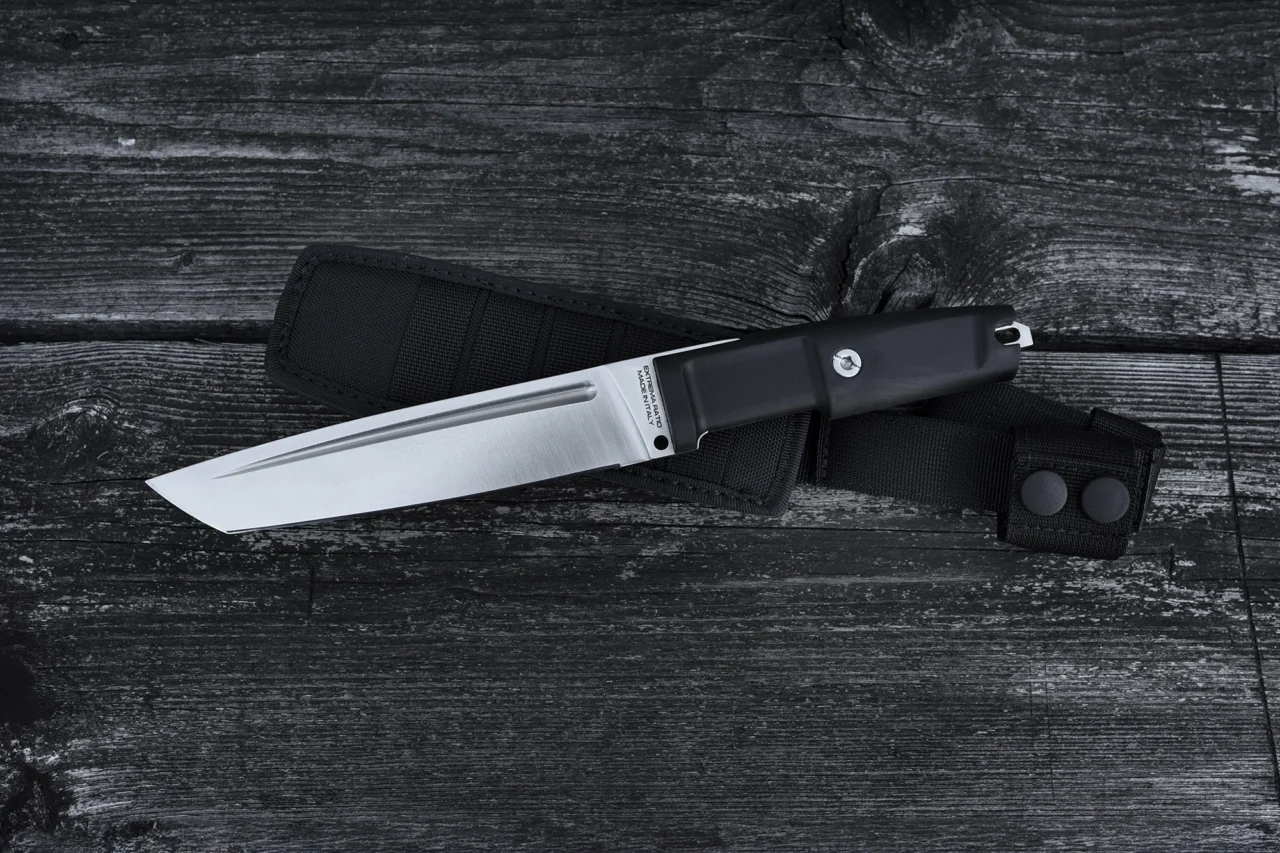 It is an out-of-time tactical tool that does not follow any trend but faithfully respects our philosophy, aimed at meeting every functional need. This model fits in the purest Extrema Ratio Tanto series, specifically designed for Japanese-style blade lovers who can’t let go of typical tactical accessories, such as textile sheaths and handles made of special polymers.