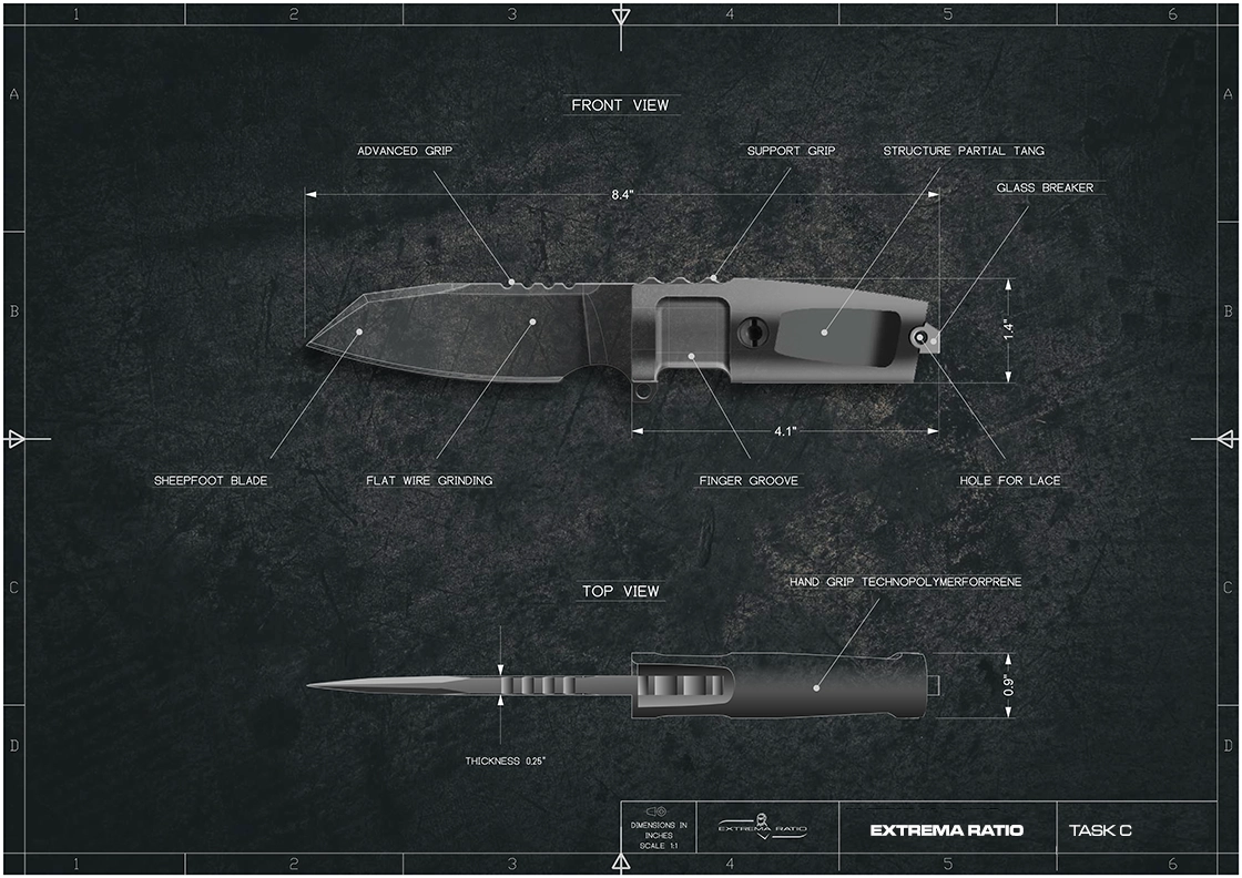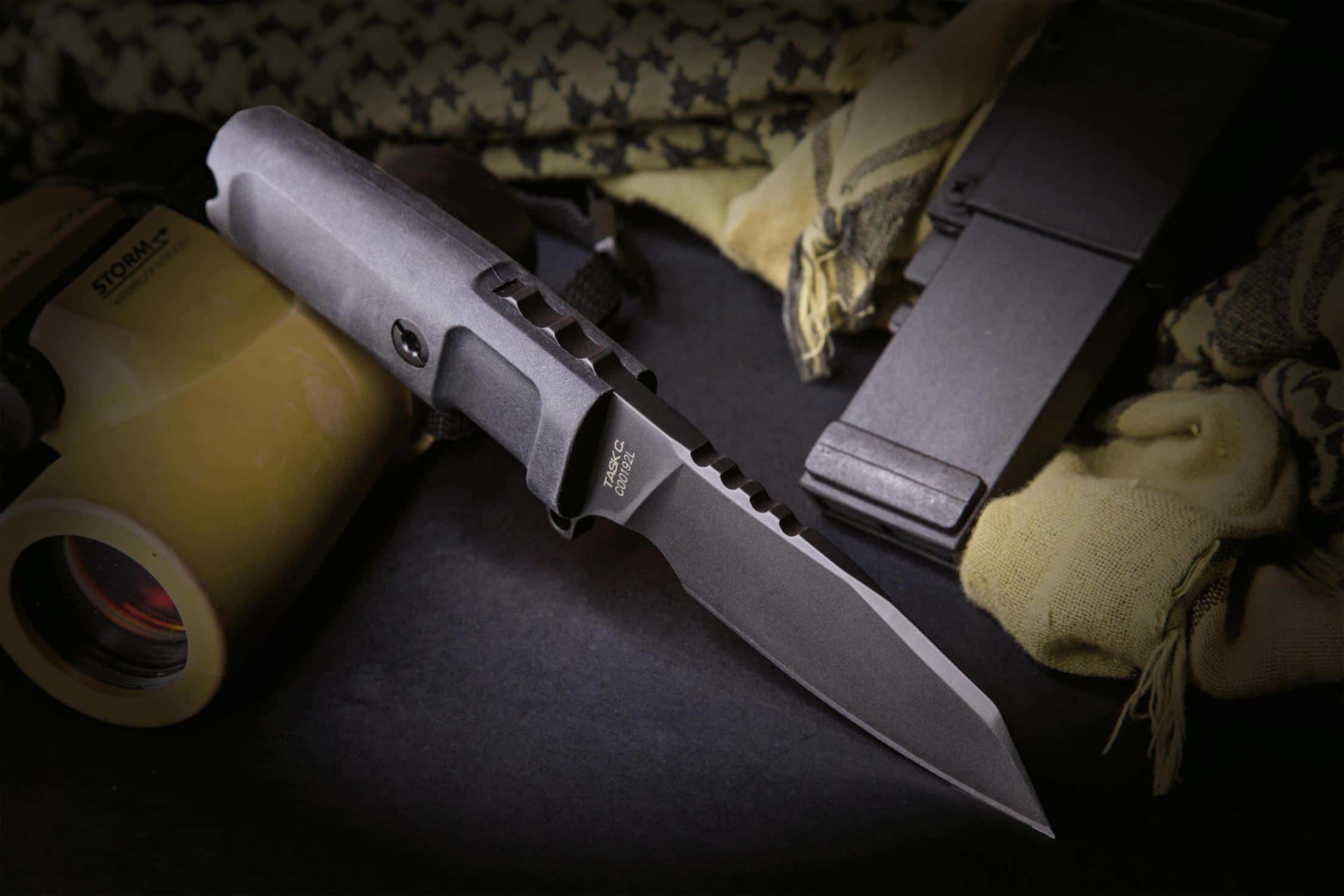 Besides a reduced size of both blade and hilt, TASK C differs from the full-sized TASK in having a plain – not partially serrated – edge.