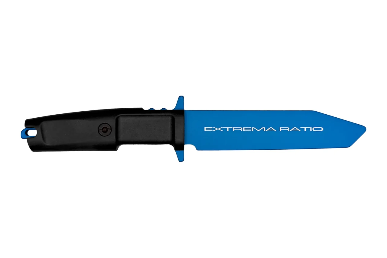 All training knives are produced in a metallic blue colour which makes them easily identified even when sheathed.