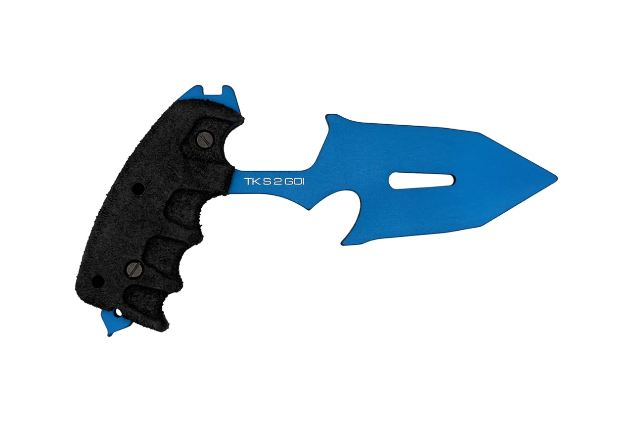 All training knives are produced in a metallic blue colour which makes them easily identified even when sheathed.