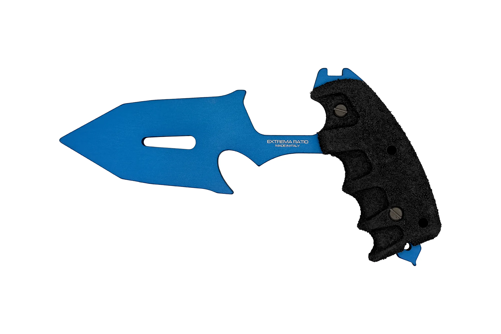The tip of the sheath has a hole to allow debris or liquids to be expelled simply by blowing into it. The sheath can be used with belt clip, ULTICLIP or malice clip making it extremely versatile, while it is also possible to attach it to a M.O.L.L.E. webbing just by weaving paracord through it. The Extrema Ratio S-THIL Black Warfare ‘Special Edition’ is delivered in a weather, dust and shock resistant Polypropylene IP67 certified waterproof case, with pressurization valve, which carries also the Nylon sheath, double ULTICLIP, double grit sharpening plate (ceramic and synthetic diamond).