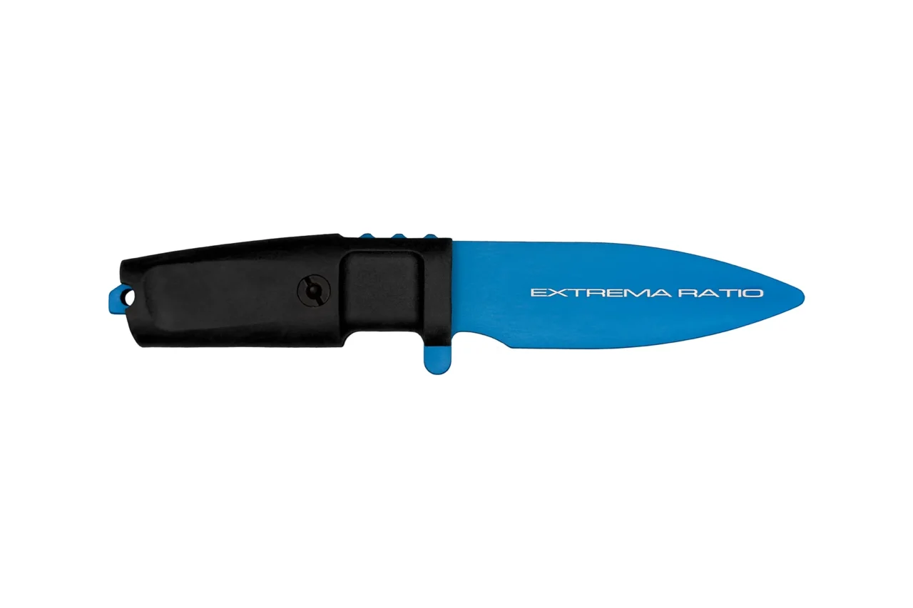 The tip of the sheath has a hole to allow debris or liquids to be expelled simply by blowing into it. The sheath can be used with belt clip, ULTICLIP or malice clip making it extremely versatile, while it is also possible to attach it to a M.O.L.L.E. webbing just by weaving paracord through it. The Extrema Ratio S-THIL Black Warfare ‘Special Edition’ is delivered in a weather, dust and shock resistant Polypropylene IP67 certified waterproof case, with pressurization valve, which carries also the Nylon sheath, double ULTICLIP, double grit sharpening plate (ceramic and synthetic diamond).
